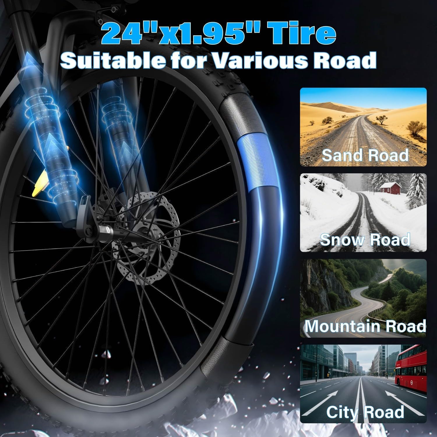 Riding Comfortably and Handily:This electric bicycle is suitable for 4.9-5.6Ft riders.Both front and rear fenders are equipped to prevent your E bike from the mud.It is also is equipped with an LCD screen,front lights,reflector lamp,and adjustable soft saddle,The 24″ puncture resistant tires are for greater durability.Our bike also features excellent dual front suspension,minimizing the impact of bumpy terrains and ensuring a comfortable experience on any surface.