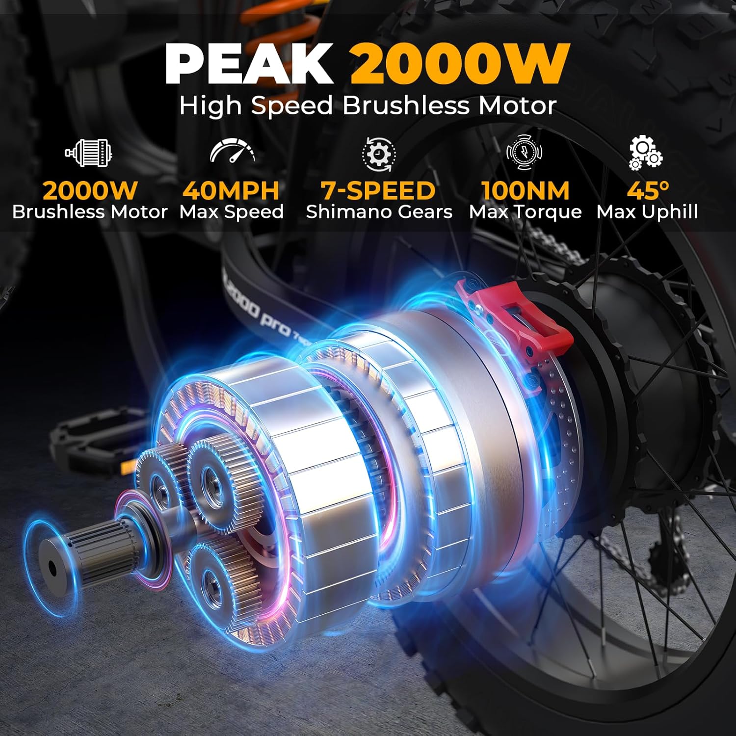 【Unrivaled Motor & Versatile Riding】This adult electric bike is equipped with a peak 3000W high-performance brushless motor, which can reach speeds of 40MPH effortlessly, Its 100N·m torque crushes 45° inclines, provide you tackling various terrains. Designed for those who demand both speed and versatility, it’s your ultimate companion for commuting and adventure
