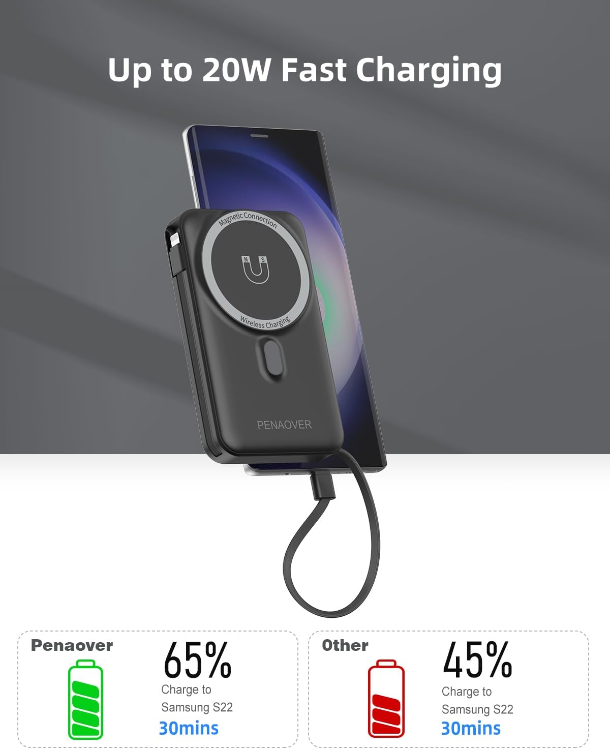 Fast Charging: It adopts QC3.0/QC4.0+ fast charging technology to charge your phone, provide 20W fast charging by usb c port and type-c cable, provide 15w wireless charging.