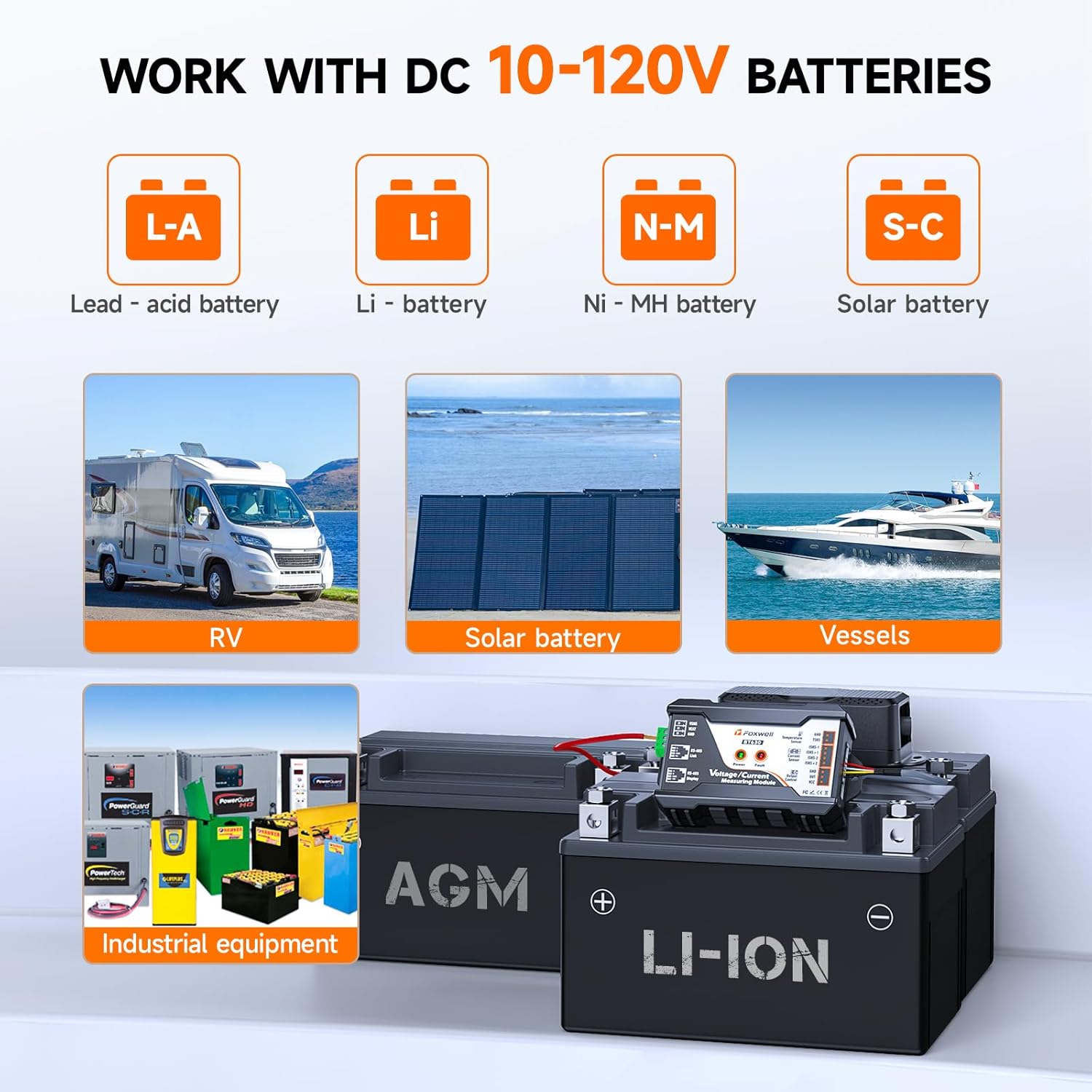 🔌【Ultra-Low Power & Universal Compatibility】Consumes only 0.4W, enabling long-term monitoring for seasonal RV storage, boats, or off-grid cabins without draining your battery. Universally compatible with LiFePO4, Lithium, AGM, Gel, and Flooded lead-acid batteries. Includes an RS-485 port for advanced integration into solar or energy management systems.