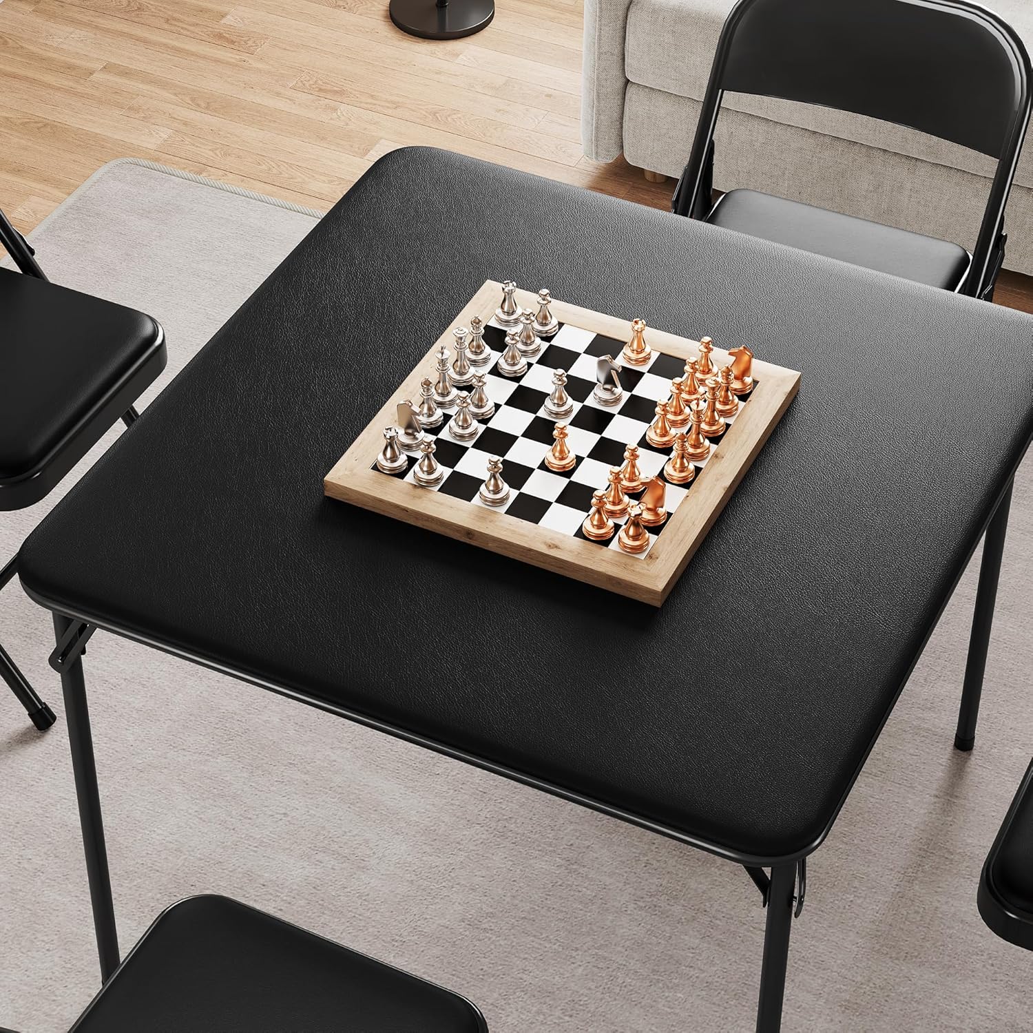 Versatile: This set of 4 upholstered black folding chairs and 1 black folding table are versatile, making them a great choice whether you use them as a folding dining table and chairs, a desk chair, a camping table and chairs, or a reading table and chairs.