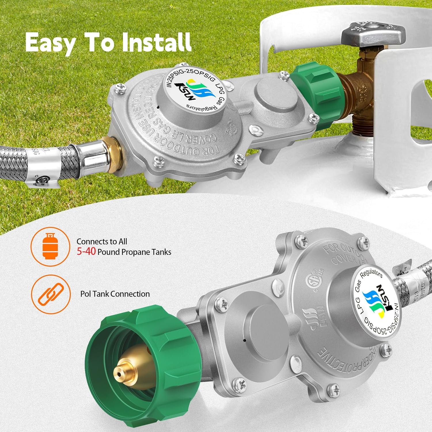 High-Quality Certification: The product is CSA certified and the regulator valve is made of high quality zinc alloy. Stainless steel braided sheathed hose effectively prevents small animal bites and enhances durability and corrosion resistance