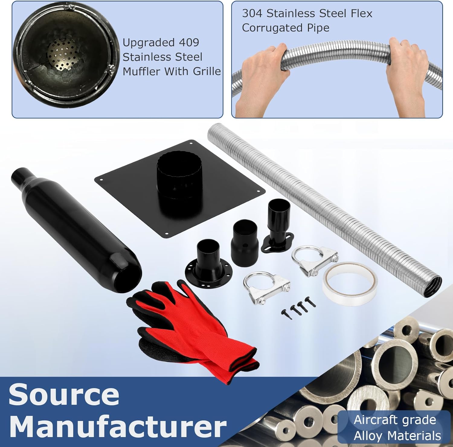 【BUILT TO LAST WITH AEROSPACE-GRADE MATERIALS】Constructed from aerospace-grade alloy and premium galvanized sheet metal, our generator muffler is built for exceptional durability and longevity. The powder-coated components add extra protection against corrosion and rust, ensuring optimal performance even in harsh environments. Invest in long-term reliability and reduce the need for frequent replacements with our high-quality generator exhaust extension kit
