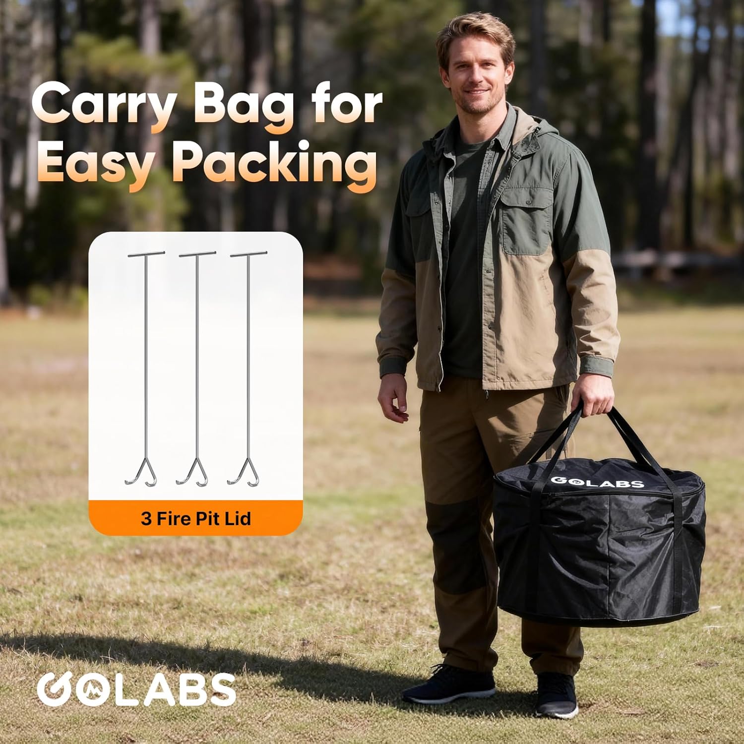 Portable & Easy to Carry : Built with a sturdy stainless steel handle, the GOLABS fire pit is easy to move anywhere. Includes a durable steel fire poker for safely adjusting logs and managing your fire with ease. Perfect for outdoor adventures.