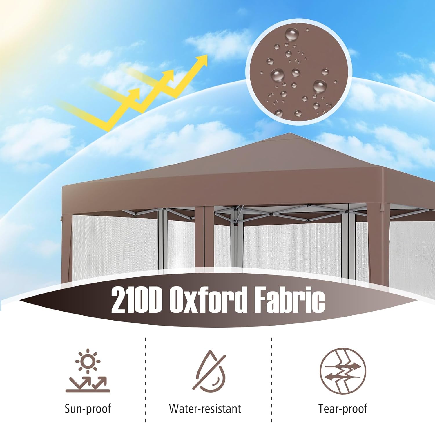 Goplus 10 FT x 10 FT Pop-Up Canopy Tent, Easy Setup Instant Folding Shelter w/Mesh Netting, Carry Bag, 8 Stakes & 4 Ropes, Height Adjustable Sunshade, Commercial Tent for Camping (Coffee)