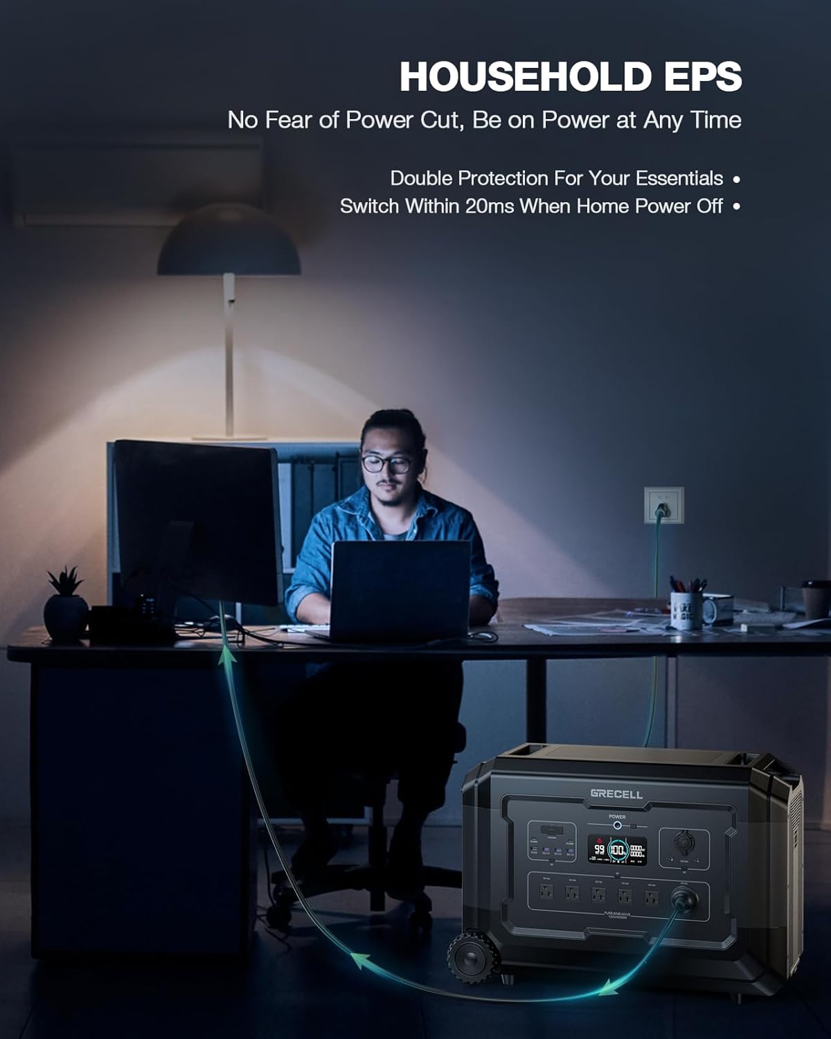 RELIABLE POWER FOR EMERGENCIES – S5 4000w portable power station features a less than 20ms EPS, ensuring safe operation for sensitive devices like PS5, CPAP machines, refrigerators, and more during power outages. It provides 24/7 protection against power disturbances or grid failure, making it ideal for home emergencies, network equipment, and outdoor tasks that require uninterrupted power.