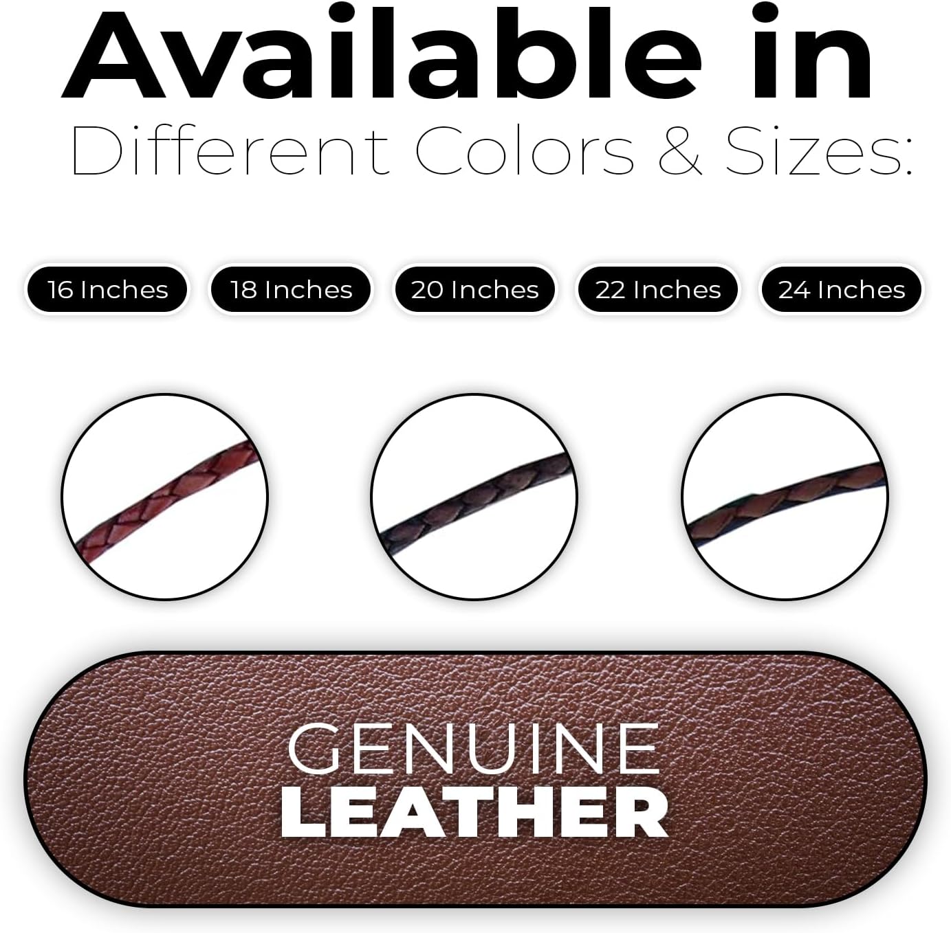 With sizes ranging from 16 to 24 inches, this leather chain necklace offers a perfect fit for everyone. Whether you prefer a snug choker-style look or a relaxed, longer fit, we’ve got you covered. Need a specific size of our leather necklaces for guys? We’ll customize it for you, ensuring a tailor-made experience that meets your style and comfort.