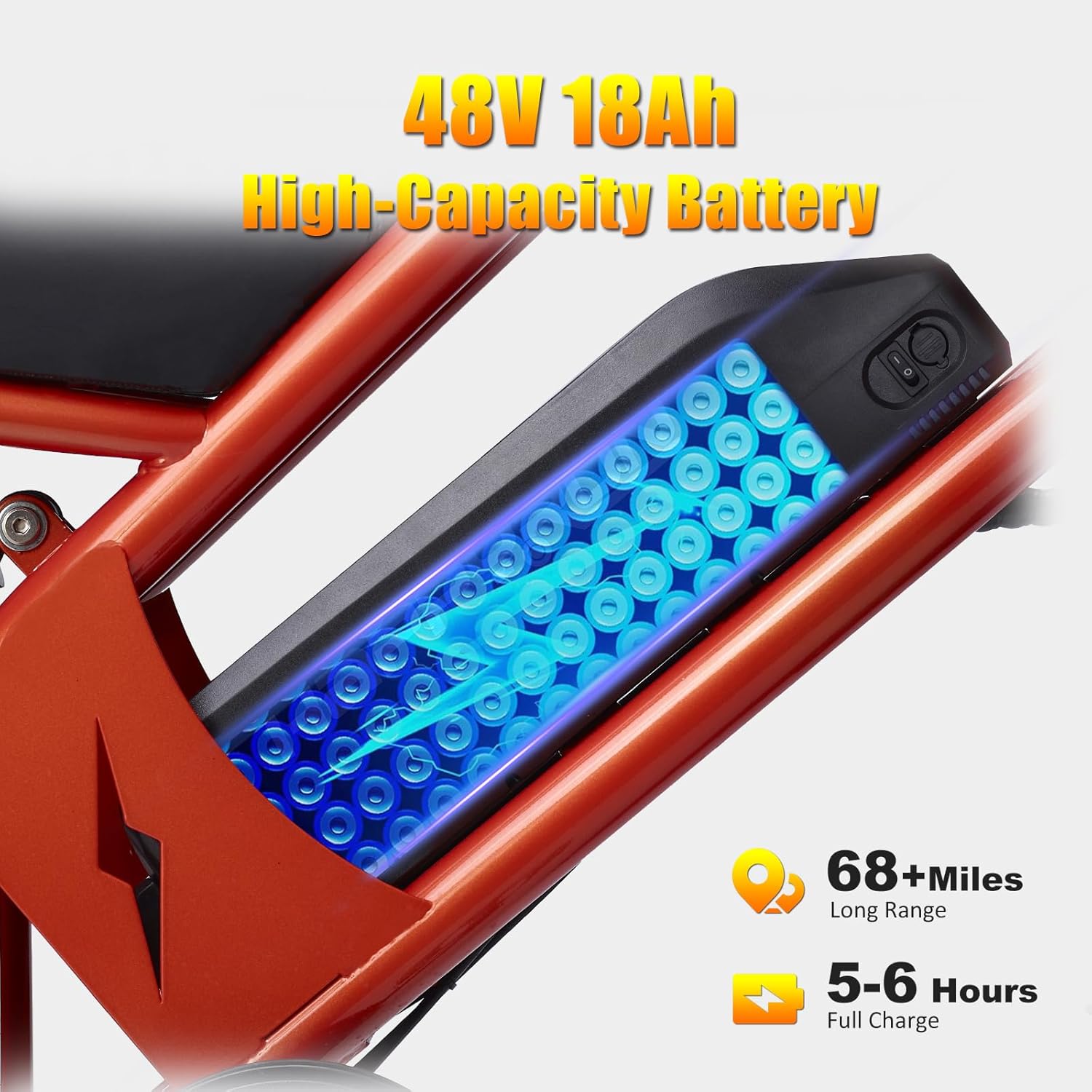 ⚡️ 750W High-Torque Motor & 68-Mile Range Conquer hills and headwinds effortlessly with a peppy 750W (1500W peak) brushless motor, reaching speeds up to 32 MPH. The 48V 18Ah lithium-ion battery provides up to 68 miles per charge (PAS mode)—perfect for commutes, errands, or weekend adventures. Charge fully in just 5-6 hours.