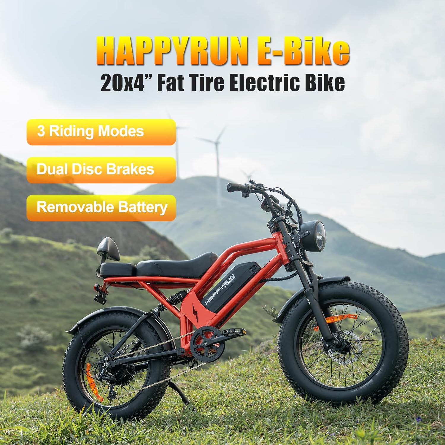 Be the first to review “HAPPYRUN 1500W Electric Bike for Adults, 48V 18Ah Removable Battery, 20″ Fat Tire E-Bike, 32MPH & 68+ Miles Range, 7-Speed Transmission, All-Terrain Mountain Ebike for Men & Women (Orange-red)”