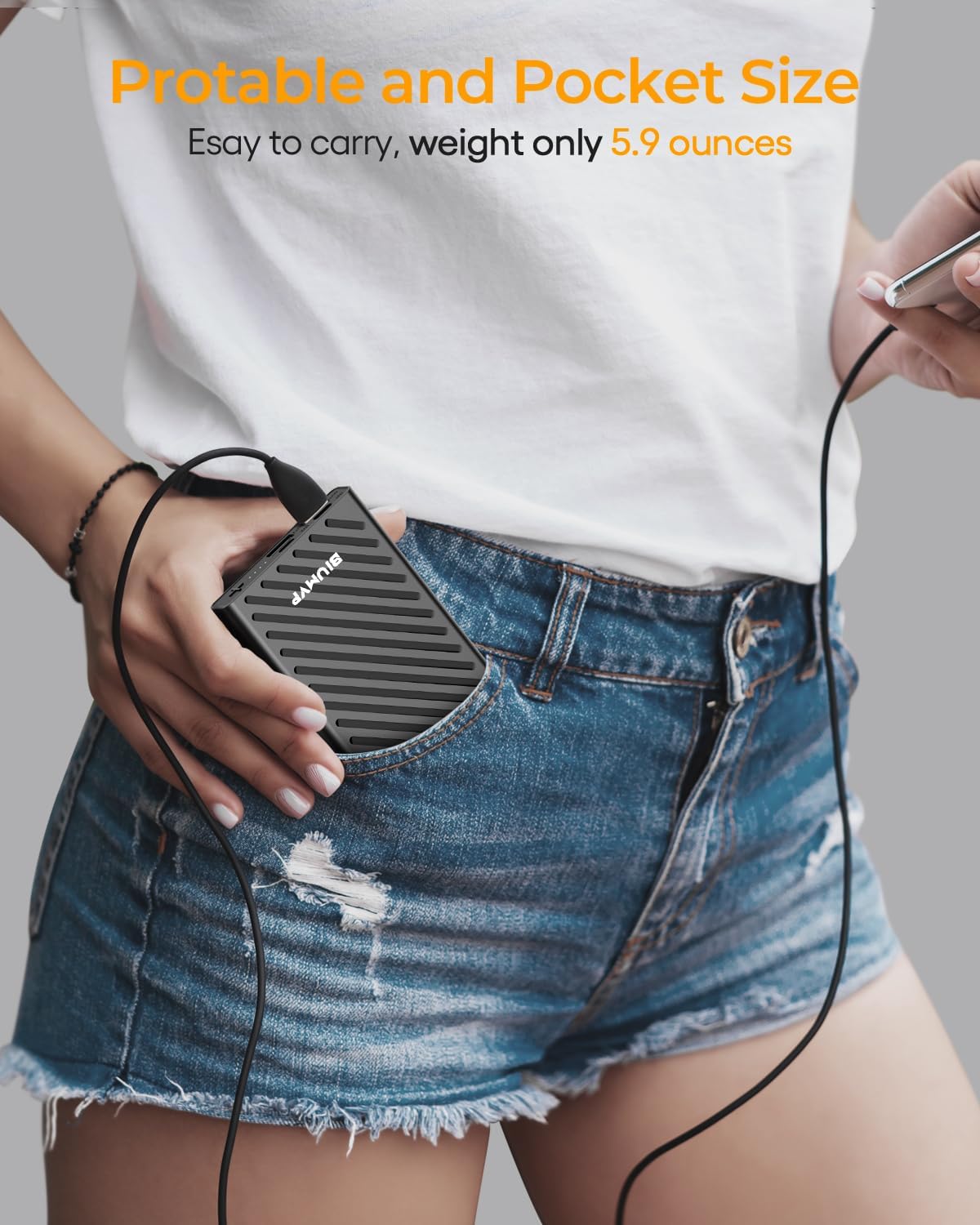 【Ultra Slim Design】The capacity of 10000mAh is stored in an incredibly slim body that is 30% thinner, 17% smaller, 25% lighter than its kinds.You can easily take it anywhere without feeling bulky and heavy.
