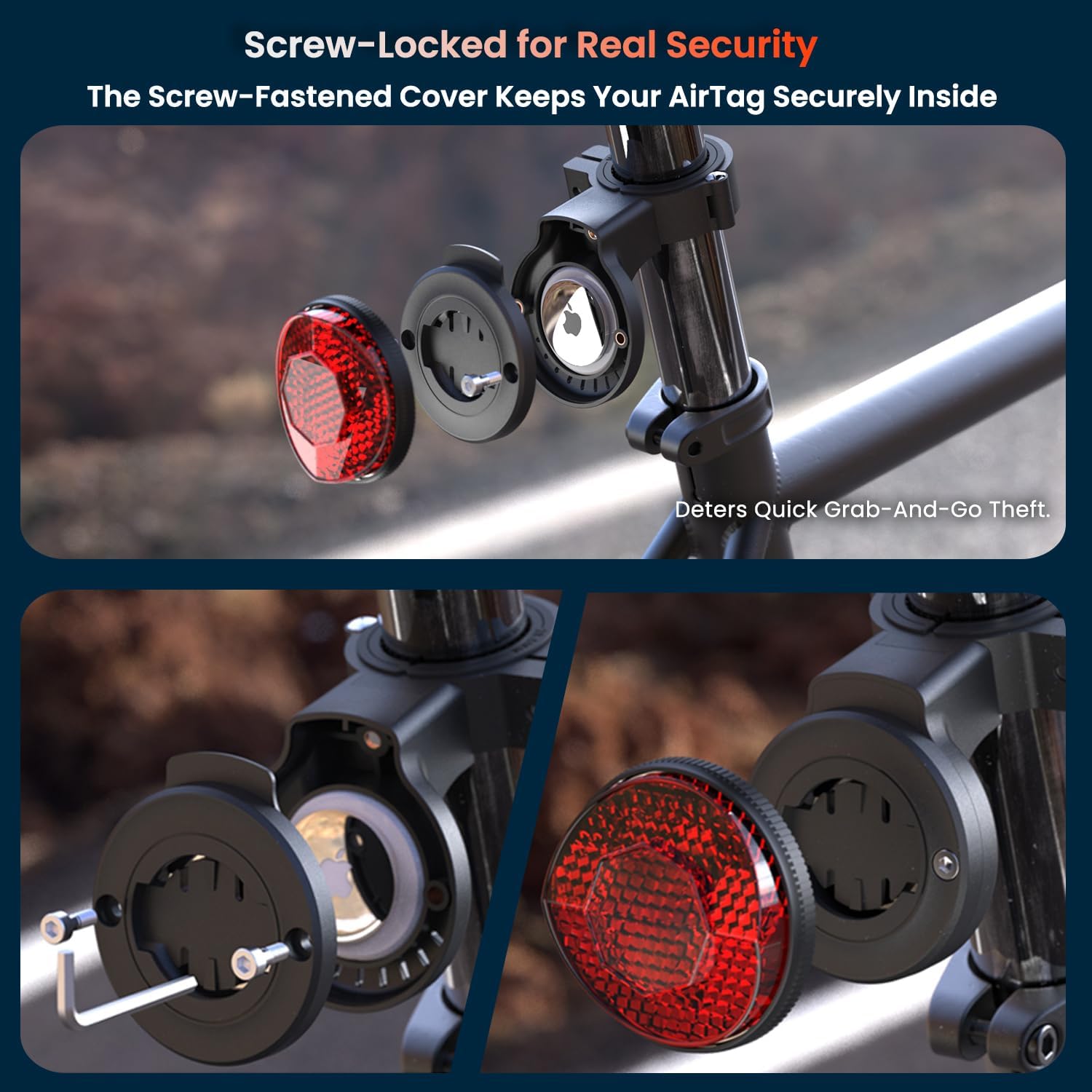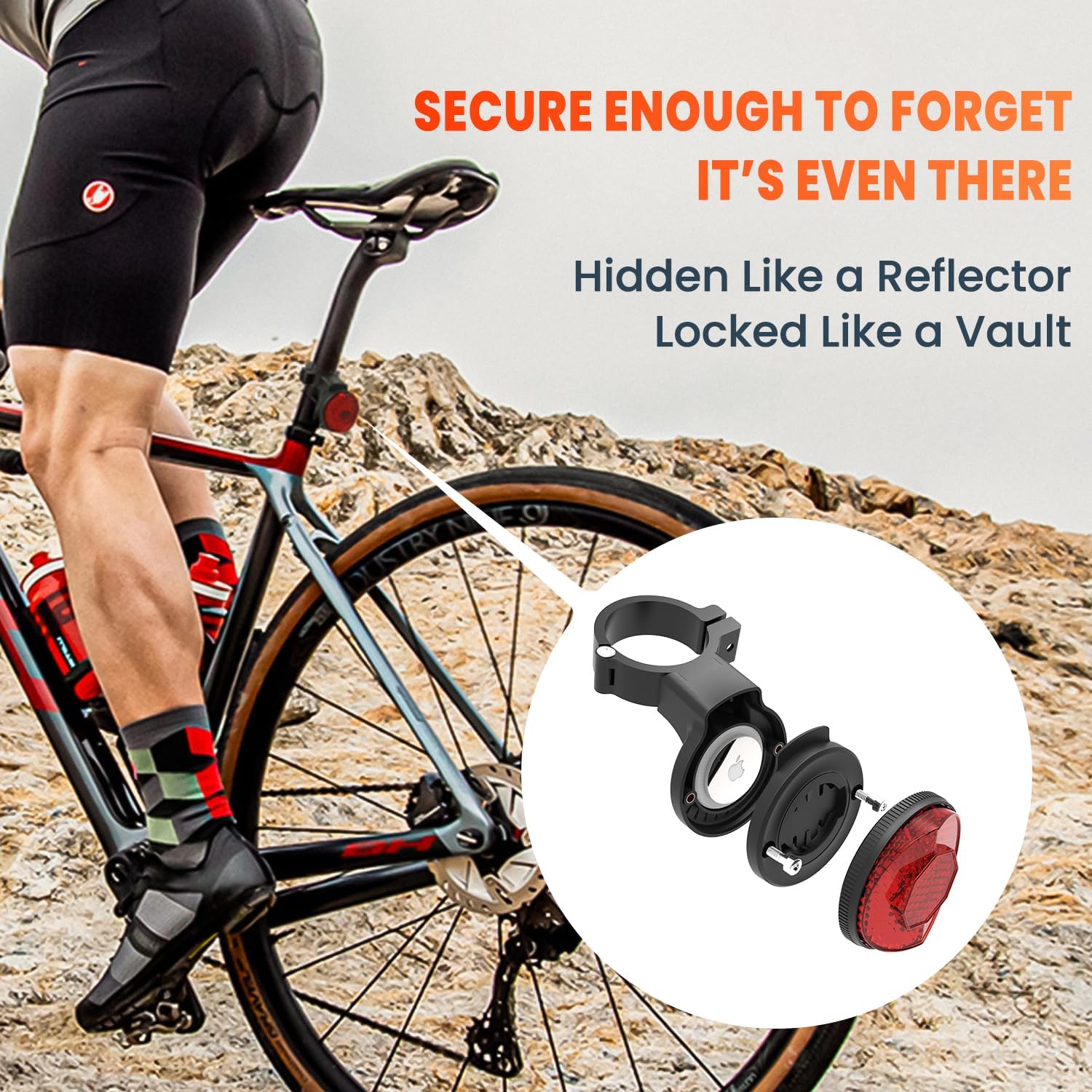 ✔【Stealthy AirTag Holder for Your Bike: 】Our hidden AirTag holder is like a secret agent—it blends seamlessly with your bike’s reflector, keeping your Airtag safe from prying eyes. Thieves won’t even know it’s there!