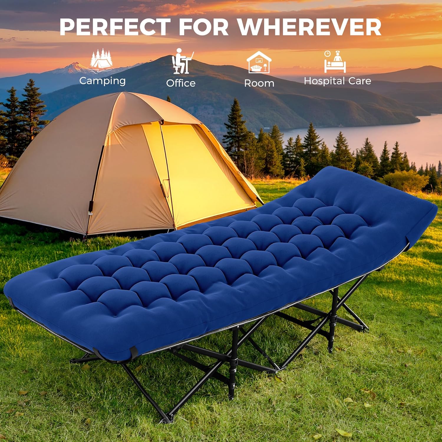 【SUITABLE FOR MULTIPLE SCENARIOS】: JEAREY cots for camping is suitable for outdoor camping, RV travel, hiking, patio, pool, balcony, terrace and so on. Indoor living room, bedroom, hospital companion or office rest, it can meet the requirements of all-day rest in any environment