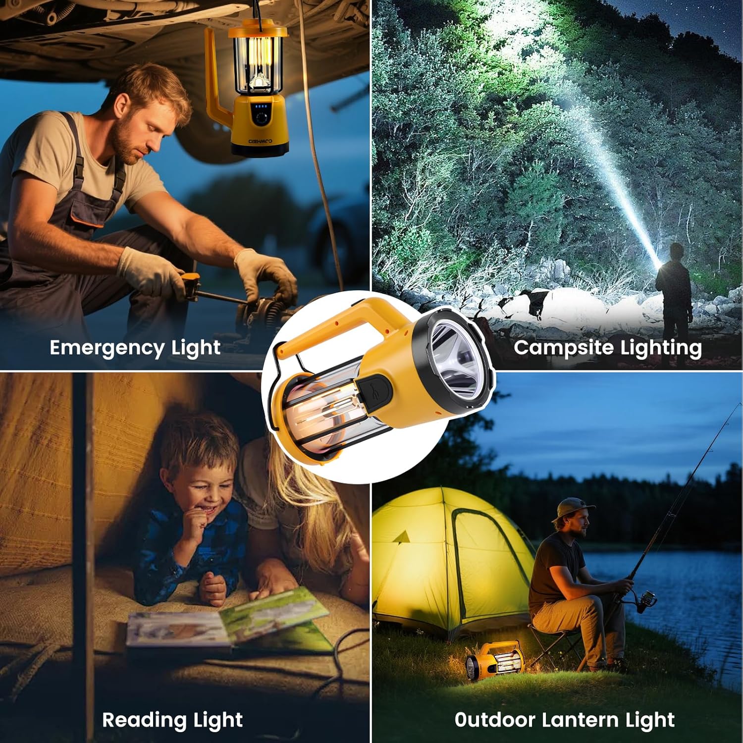 VERSATILE 2-IN-1 LIGHTING – Switch between lantern and flashlight modes to suit your needs. The powerful beam reaches up to 2625ft, making it ideal as a lantern for power outages, a camping light, or a bright flashlight for hiking and fishing