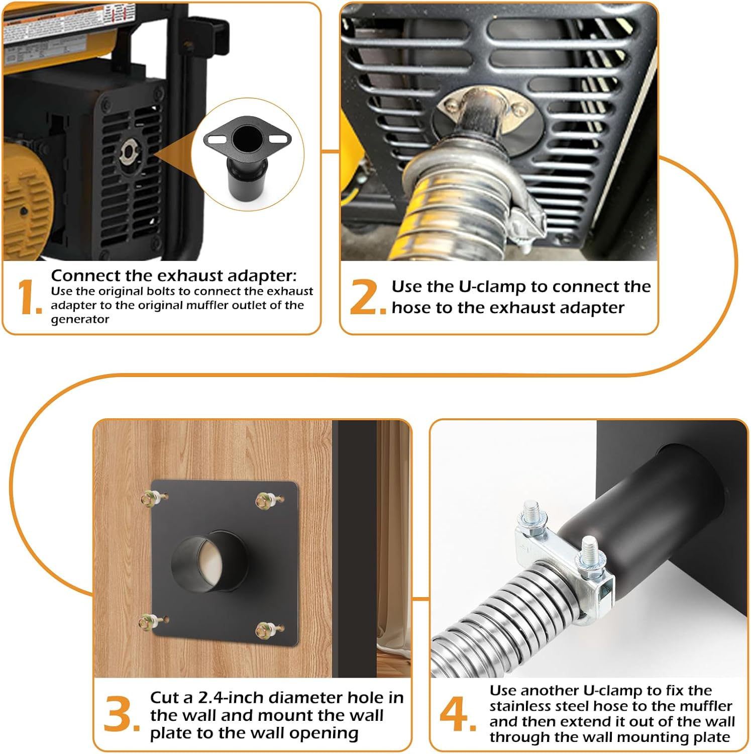 1. Connect the exhaust adapter: Use the original bolts to connect the exhaust adapter to the original muffler outlet of the generator