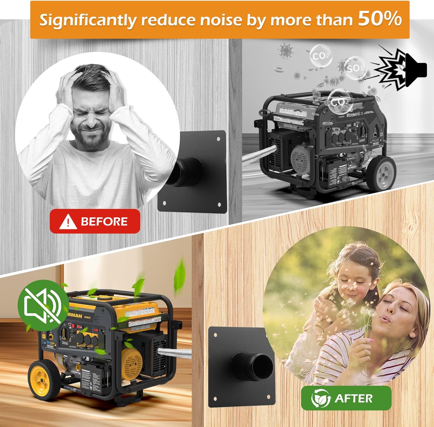 Significant noise reduction effect:Our generator exhaust extension kit can reduce the noise of the generator by 50%-55%.By upgrading the muffler grille,special sound insulation materials and optimized design,it can effectively reduce the exhaust noise and make the generator run quieter,suitable for residential areas and home environments