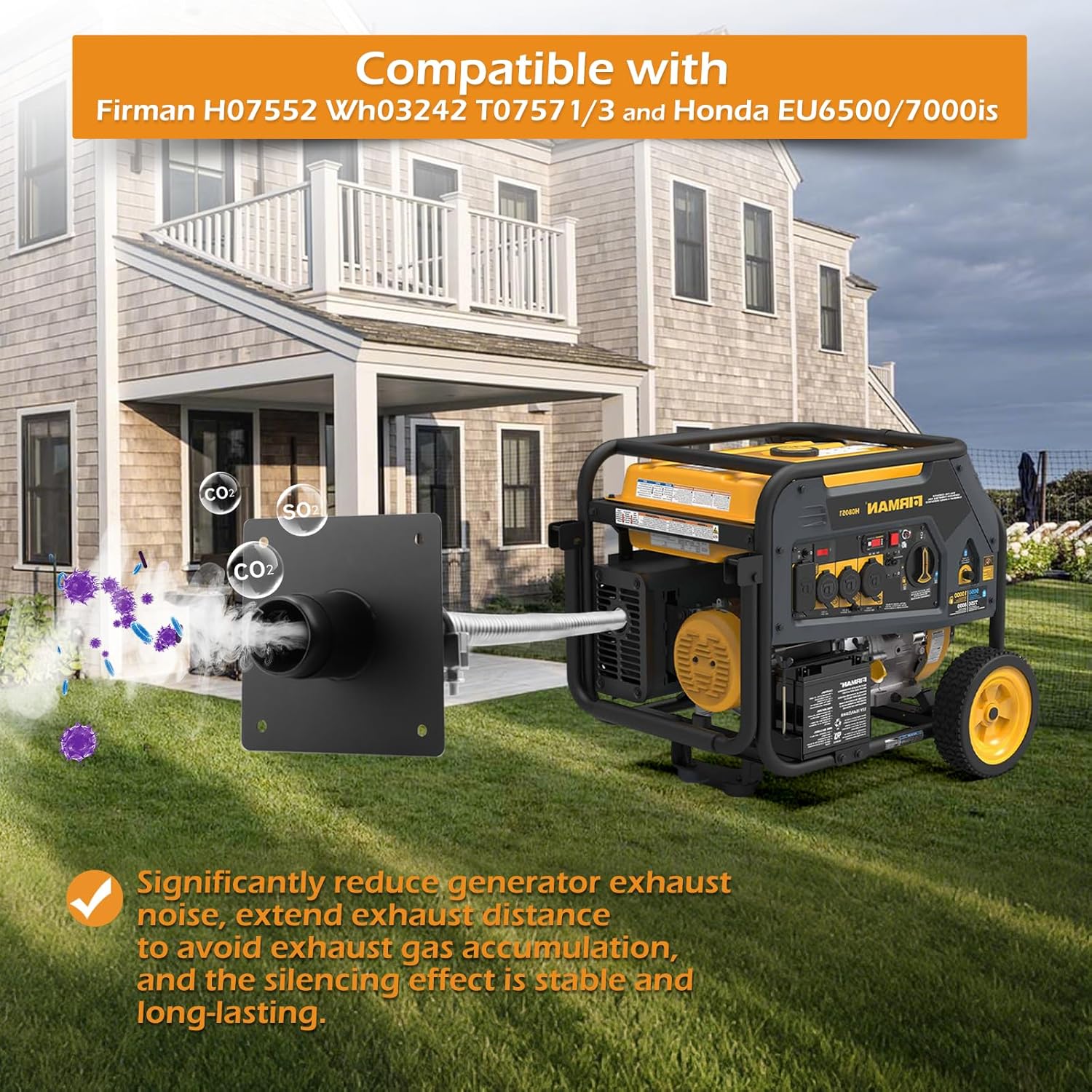 LCGP Generator Exhaust Extension Silencer Kit Reduce Noise by 50% with Mounting Plate and Adapter Universal Fit for Firman H07552 Wh03242 T07571/3 and Honda EU6500/7000is