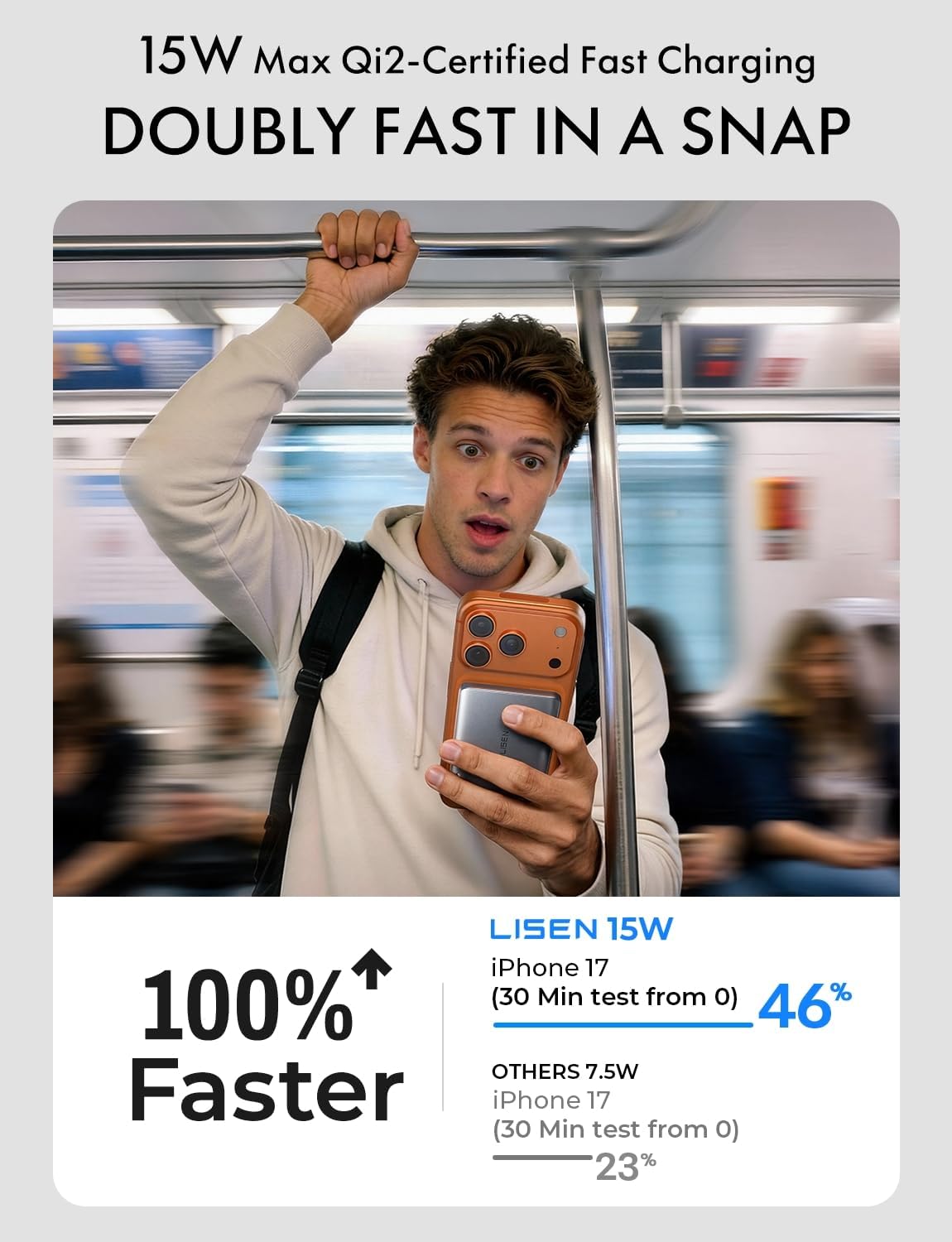 Be the first to review “LISEN Qi2 15W Ultra Slim MagSafe Battery Pack,5000mAh Fast Charging MagSafe Power Bank Slim Wireless,Slim Magnetic Portable Charger,Magnetic Power Bank for iPhone Air/17/16/15-12 Series,Gifts for Men”