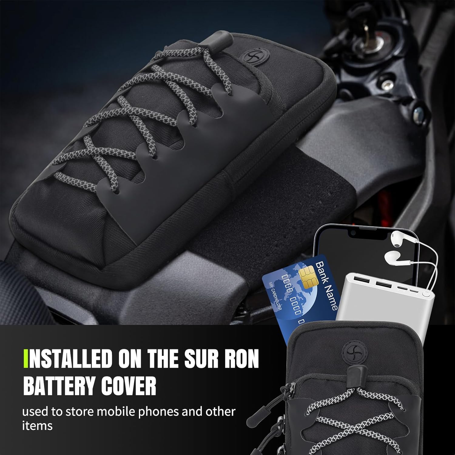 Functionality – This bag for Surron Light Bee is installed on the battery cover and serves as a convenient storage solution for mobile phones, small maintenance tools, and other essential items. It effectively solve the problems of carrying belongings while riding. The installation strap (arm strap) is made from elastic material and can be adjusted from 14 cm to 38 cm, allowing you to use it as either a wrist bag or an arm bag.