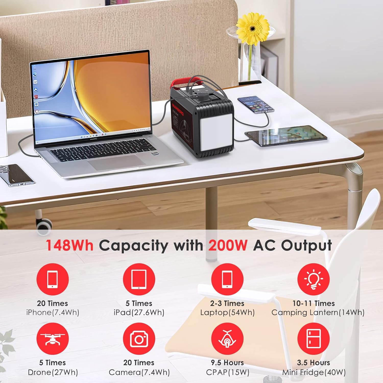 MARBERO 200W Portable Power Station 148Wh Camping Solar Generator Laptop Power Bank with AC Outlet 110V, DC, USB QC3.0, LED Flashlights for CPAP Home Outdoor Trip Emergency Backup