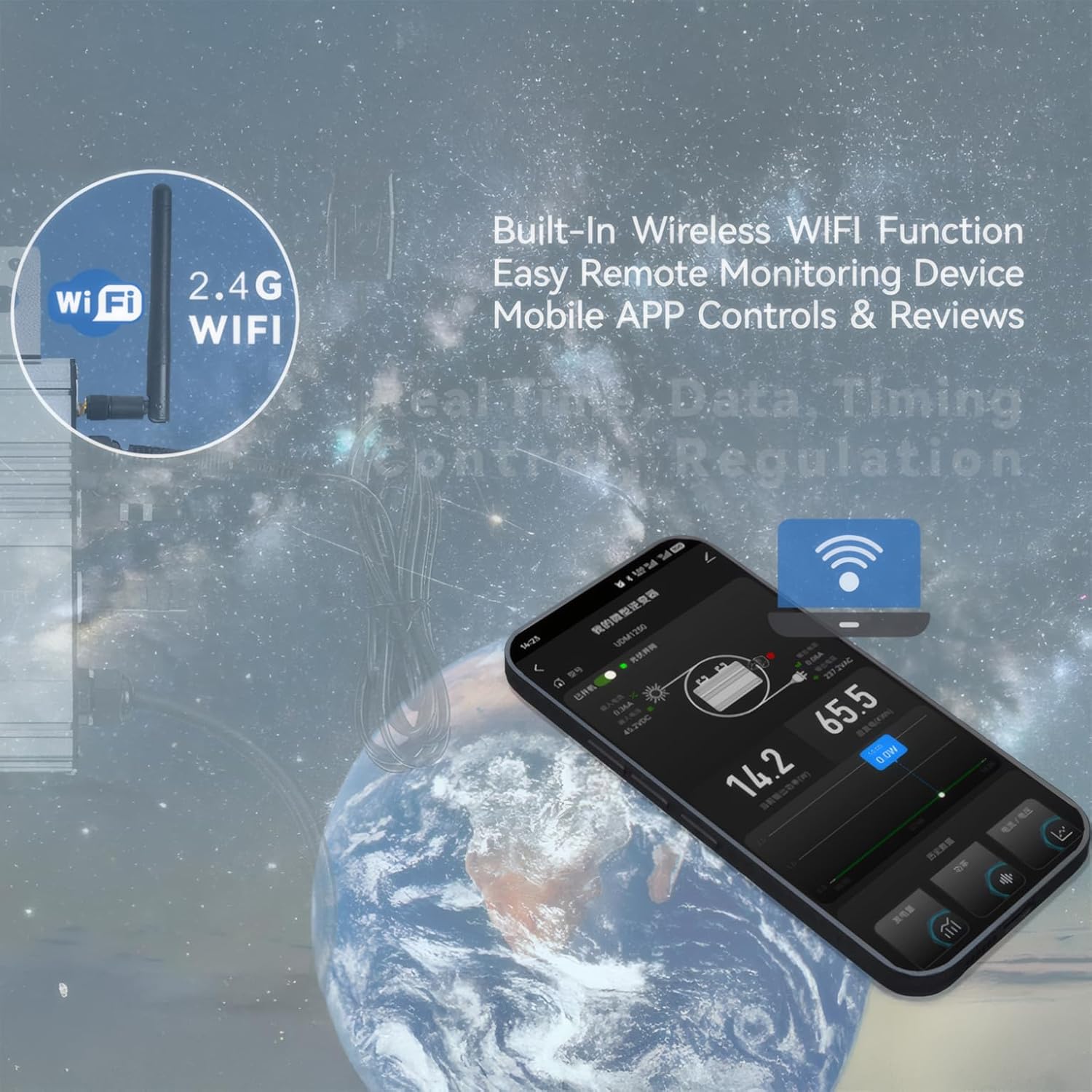 Built-in WiFi for remote monitoring & mobile App :Can monitor the operating status of the equipment at any time, including important parameters such as voltage, current, real-time power generation, and total power generation