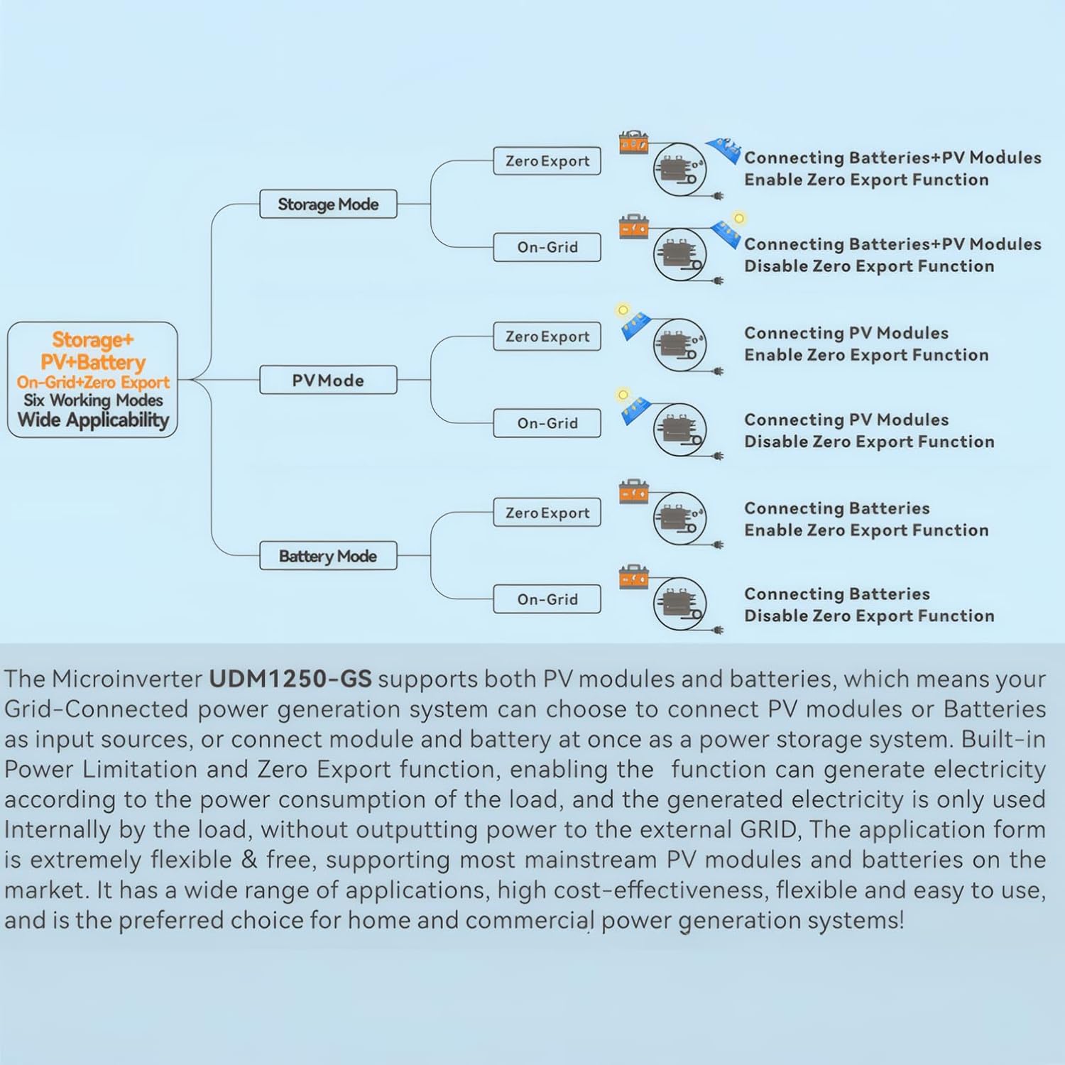 Micro Grid-Tie Inverter with Battery Storage,Multiple Connection Modes,APP Control,20V-60V PV Input, 36V/48V Battery, 180-265VAC Output (UDM-GS) (1000W)