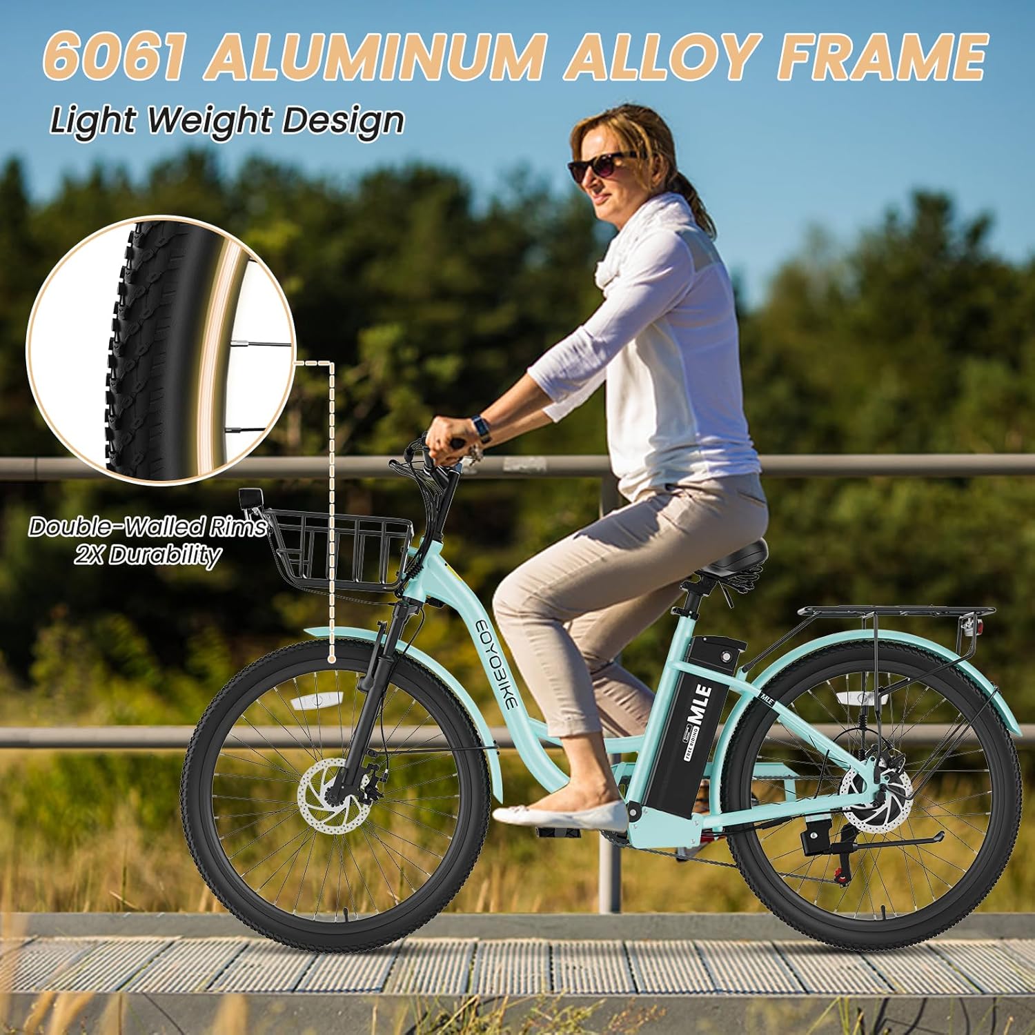 6061 Aluminum Frame: Built to last, this electric bicycle features a durable 6061 aluminum frame that ensures both strength and longevity. The frame provides a sturdy foundation for all your rides, whether for daily commuting or long-distance adventures. Designed and tested for stability, it guarantees durability over time.