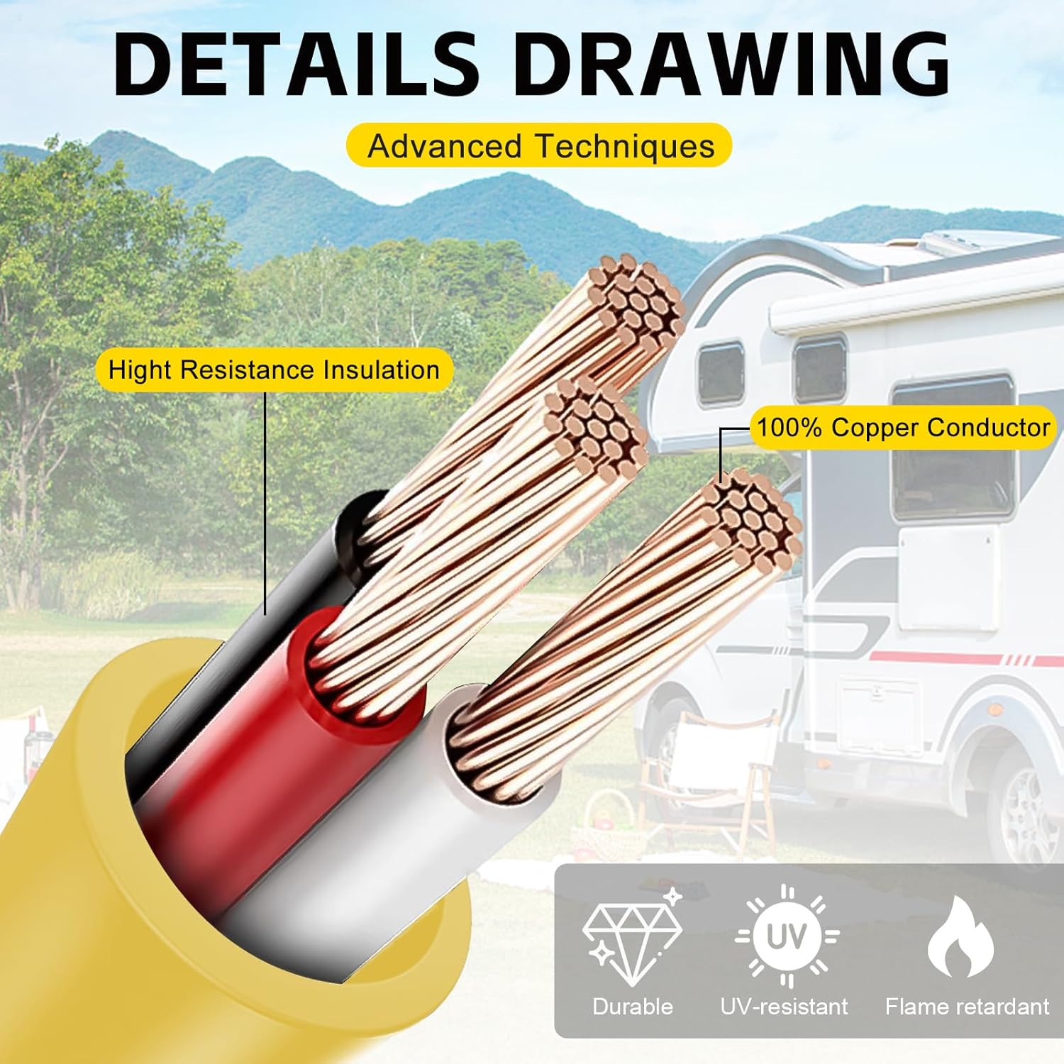 Easy to identify & Portable: Bright yellow color makes it obvious to see in low light or cluttered areas, and the built-in power indicator at the socket end makes it easy to find working appliances in dark environments.