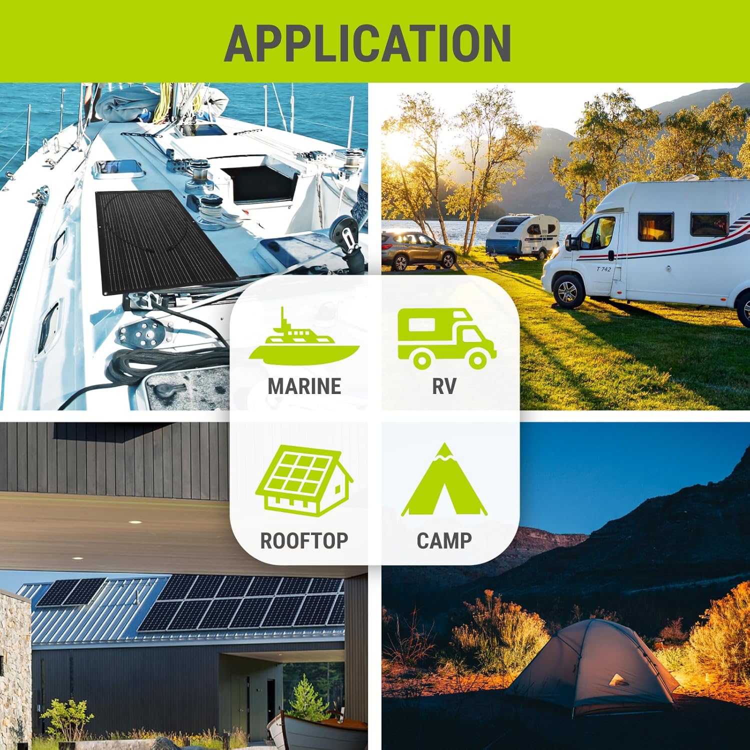 【Ultra Lightweight】Only 3.8lbs, 0.08inch thin, less than conventional solar panels, making transportation and installation a breeze. Due to its lightweight and portability, this module is ideal for marine boats, teardrop trailers, curved roofs, and overlanding tents.