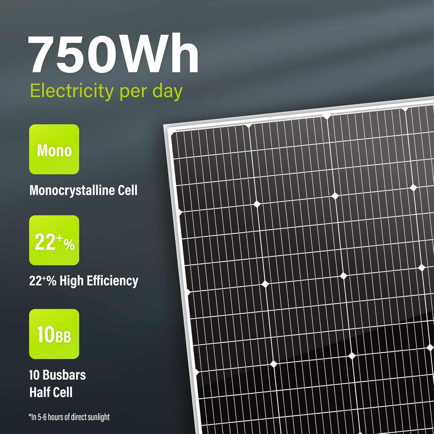 Newpowa 150W(Watt) 10BB Solar Panel Monocrystalline 12V High Efficiency PV Module 150W for RV Marine Boat Trailer Camper Rooftop Off Grid System