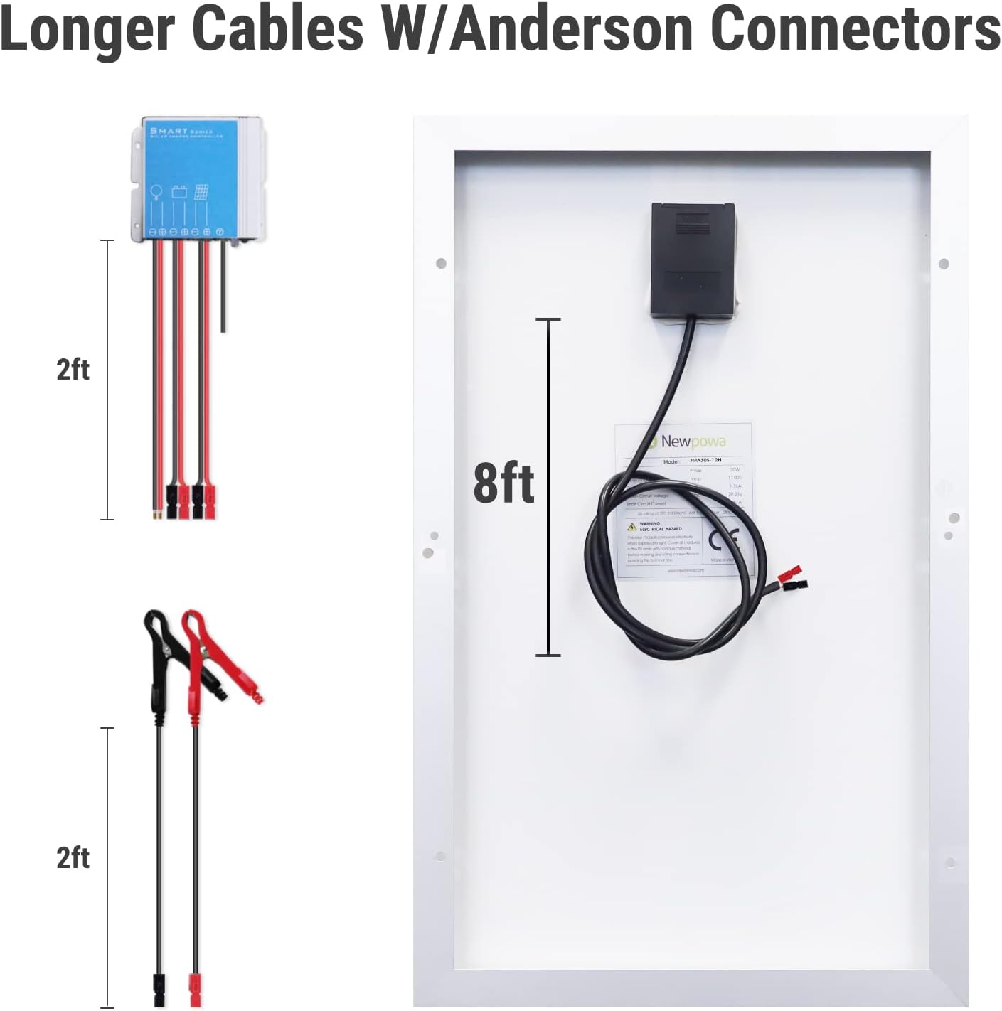 Plug & play Anderson connectors:Smart 12V/24V auto charge controller Pre-attached extension cable with Anderson connectors, makes you use this waterproof kit easily.