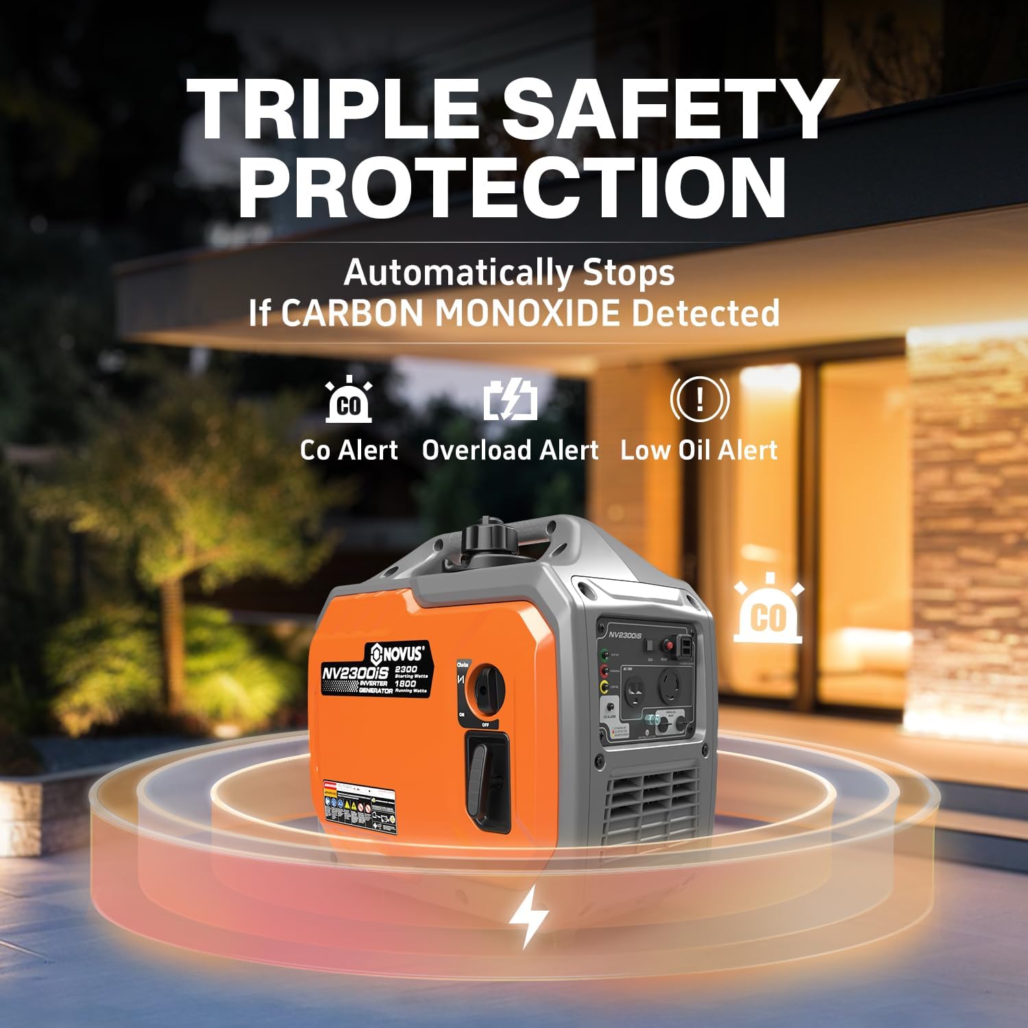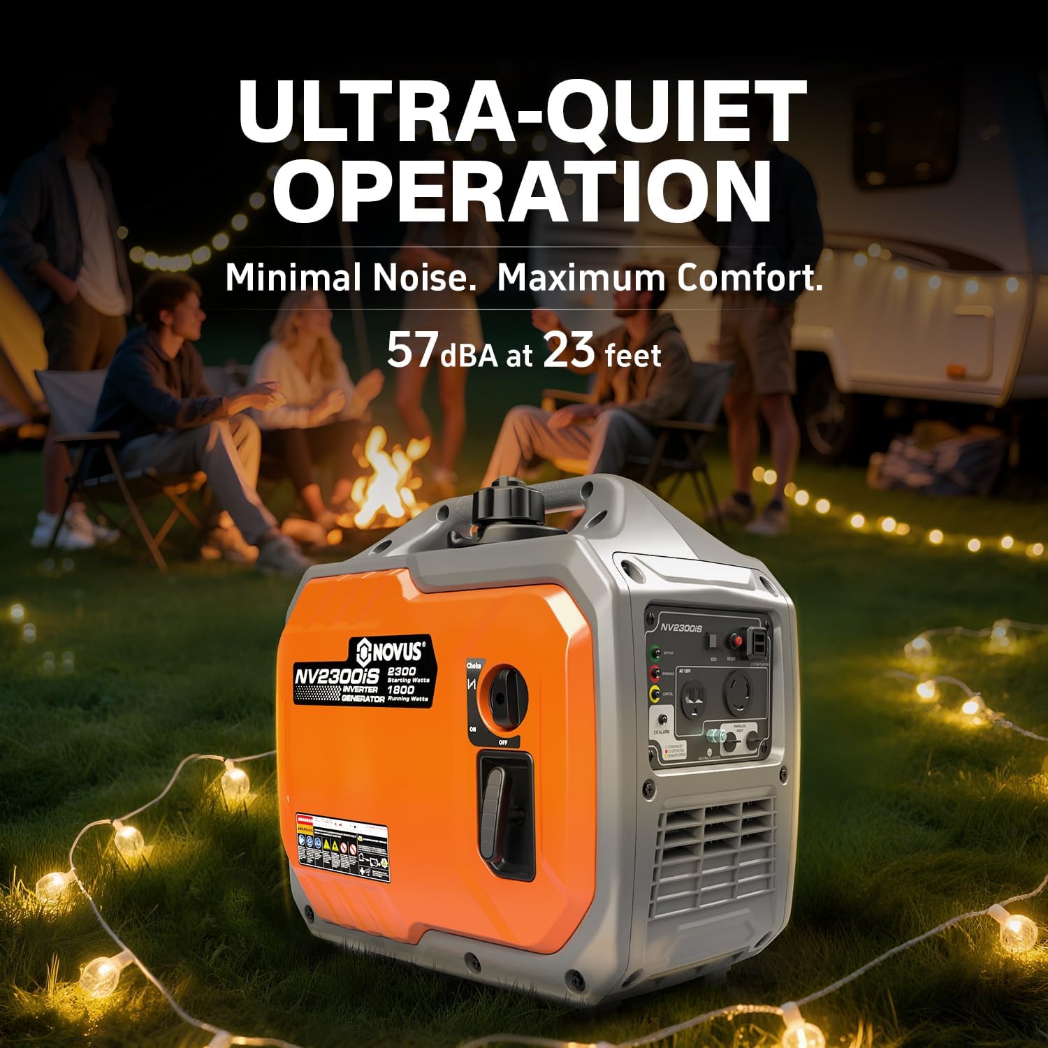 NOVUS 2300-Watt Portable Inverter Generator, Gas Powered, RV Ready, Quiet Small Gas Generators for Home Backup, Outdoor Camping, Parallel Capable, with CO Sensor, EPA Compliant