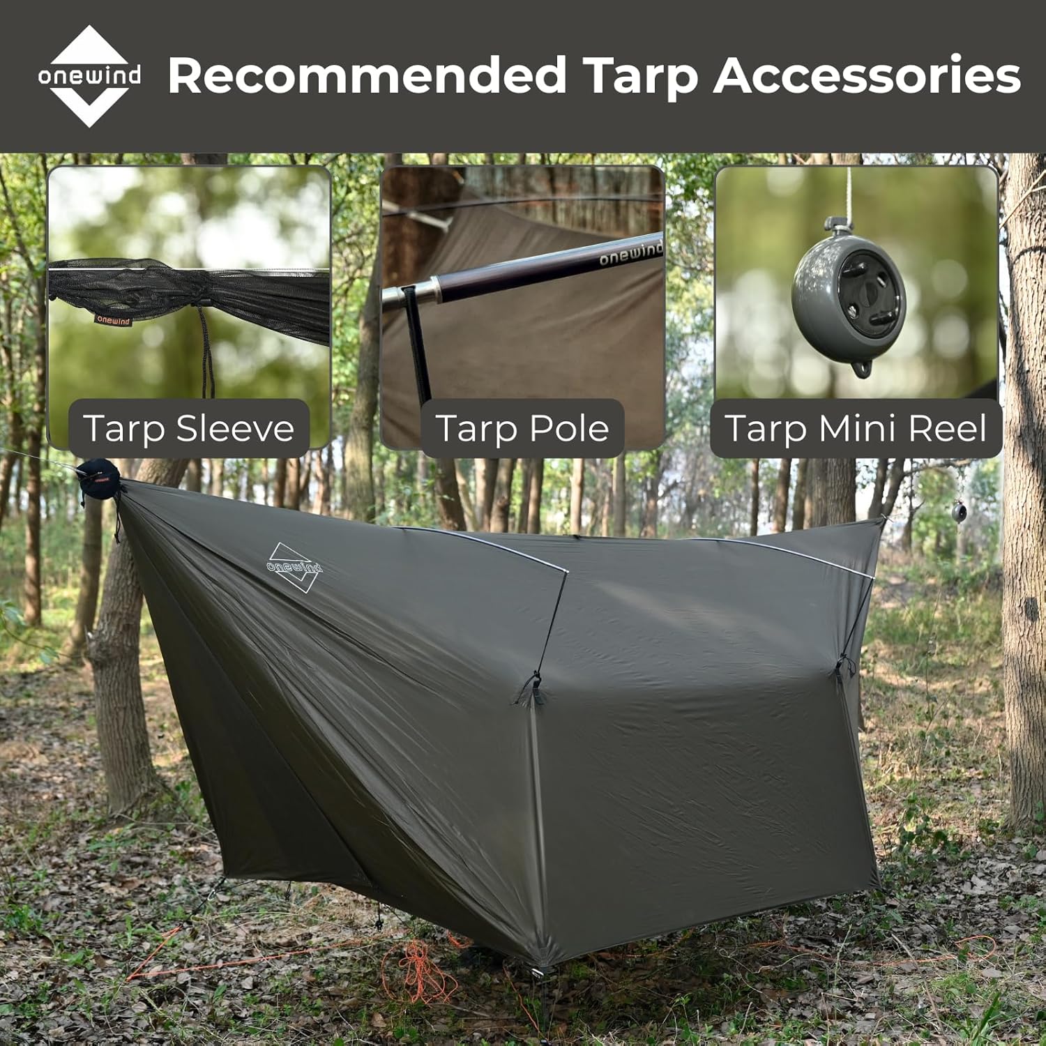 onewind 12×10 ft Hammock Tarp, Ultralight Tarp Silnylon Hammock Rain Fly Lightweight Waterproof Camping Tent Tarp with Doors, Easy to Setup with Stuff Sack, Tent Stakes, OD Green