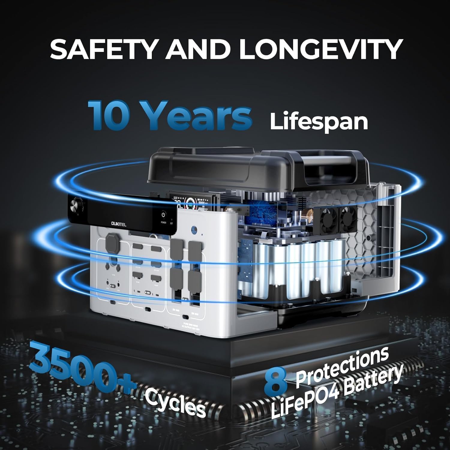 🎃【Over 10 Years Lifespan and LFP Battery】OUKITEL solar generators Design with 20+ years of manufacturing expertise run on ultra-durable 640000mAh capacity LiFePO4 batteries—outperforming standard batteries with 3,500+ charge cycles and a lifespan over 10 years. Provides you with a 2-year service and you can trust us.