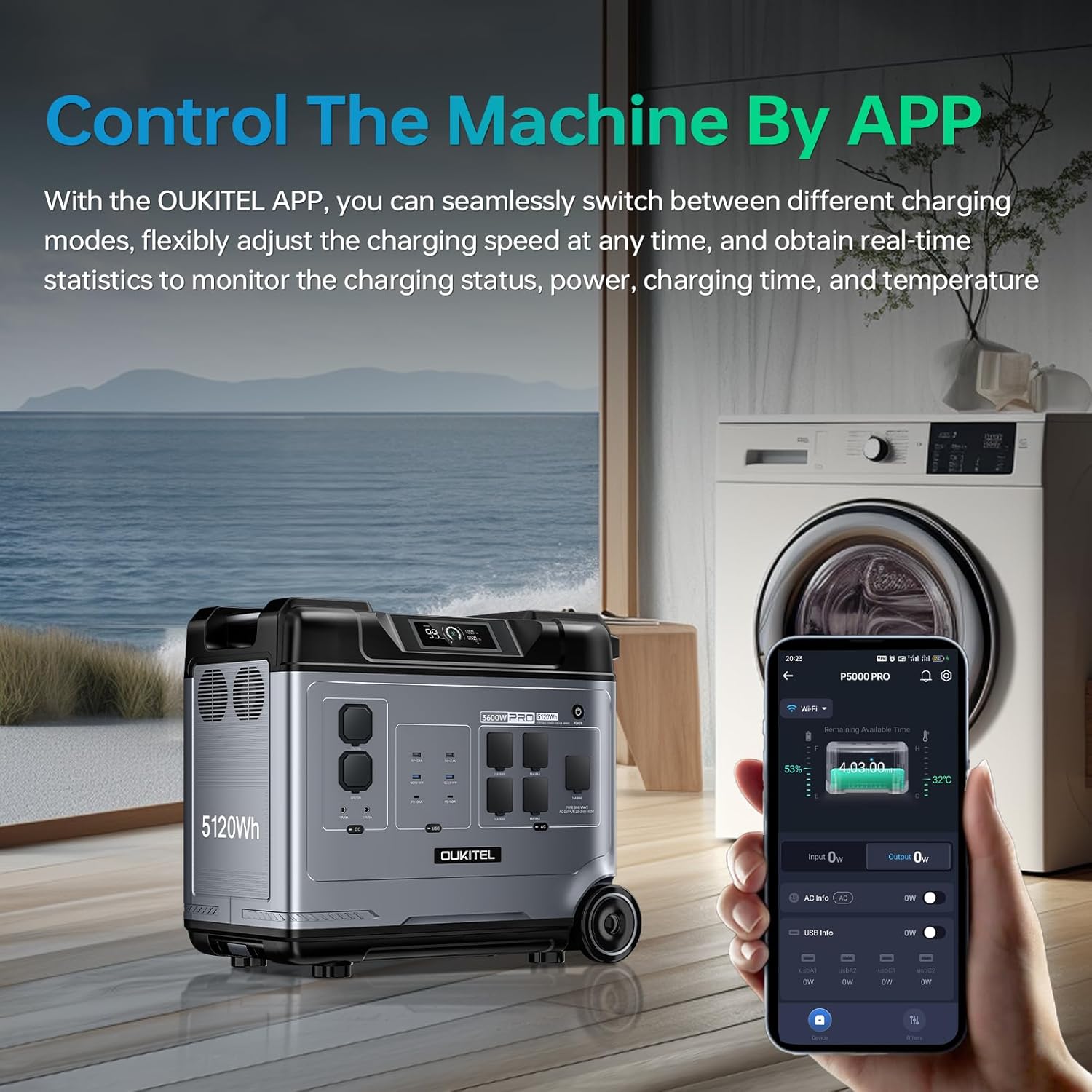 OUKITEL P5000 PRO Solar Generator 5120Wh, LiFePO4 Battery Power Station, 100-120V 5 3600W AC Output, APP Control, Generator for Home Use, Power Outage, Camping, RV, Emergencies