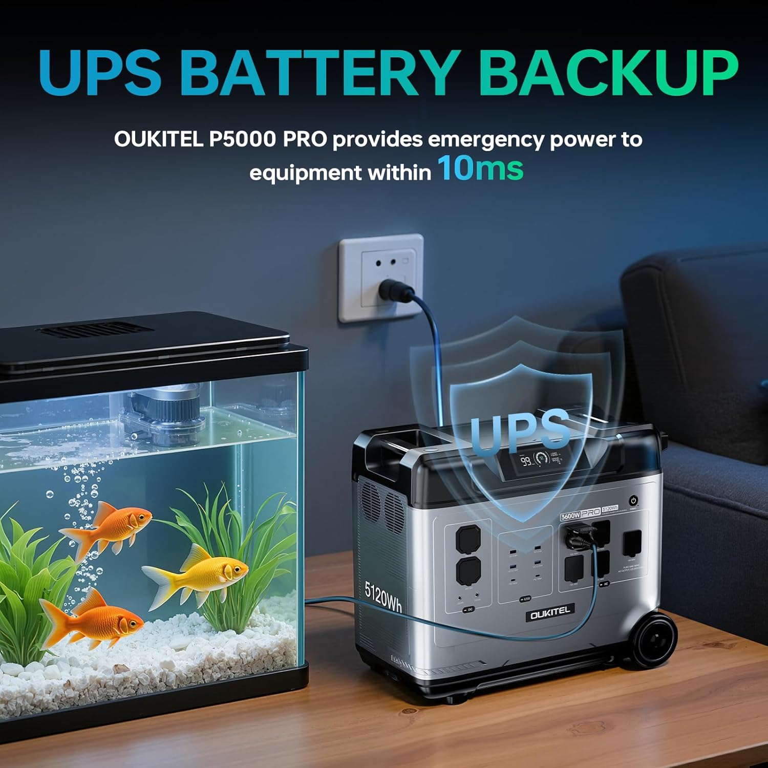 Uninterruptible Power Supply: With the ultra-fast 10 ms switch-over capability of theOUKITEL P5000 PRO, enjoy instant backup for your NAS systems, servers, and entertainment devices. Safeguard against power disruptions and ensure continuous, safe operation. This portable power station is your reliable partner for an uninterrupted life. This solar generator operates at a peaceful hum as low as 60dB, ensuring undisturbed sleep even beside your bed. Its whisper-quiet operation is so discreet, you’ll hardly notice it’s there, making it perfect for both indoor and outdoor use.