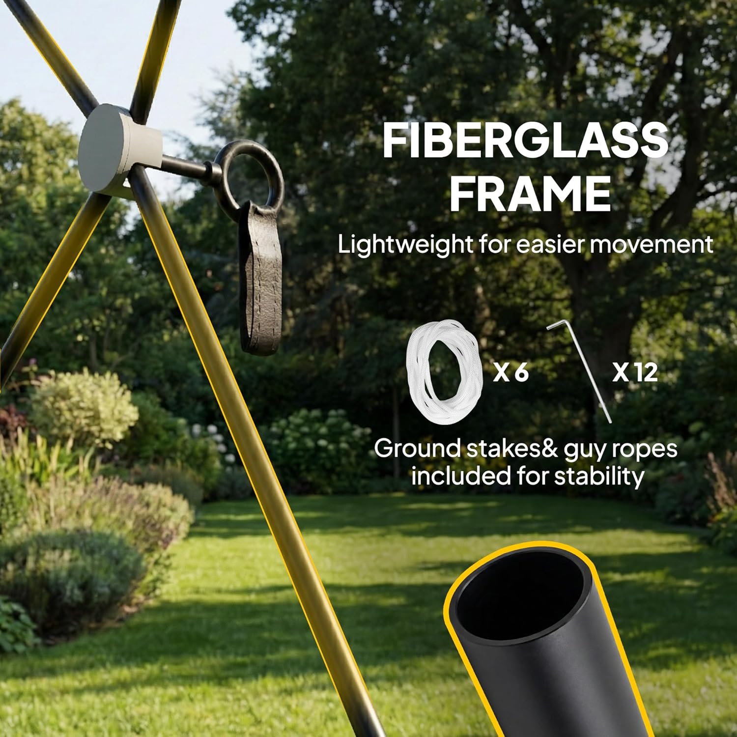 210D Oxford Roof and Fiberglass Frame: Featuring a PU-coated 210D Oxford roof and lightweight fiberglass frame with stakes and ropes, the screened canopy tent provides UPF30+ sun protection, rain resistance and stability for a cool, shaded outdoor retreat