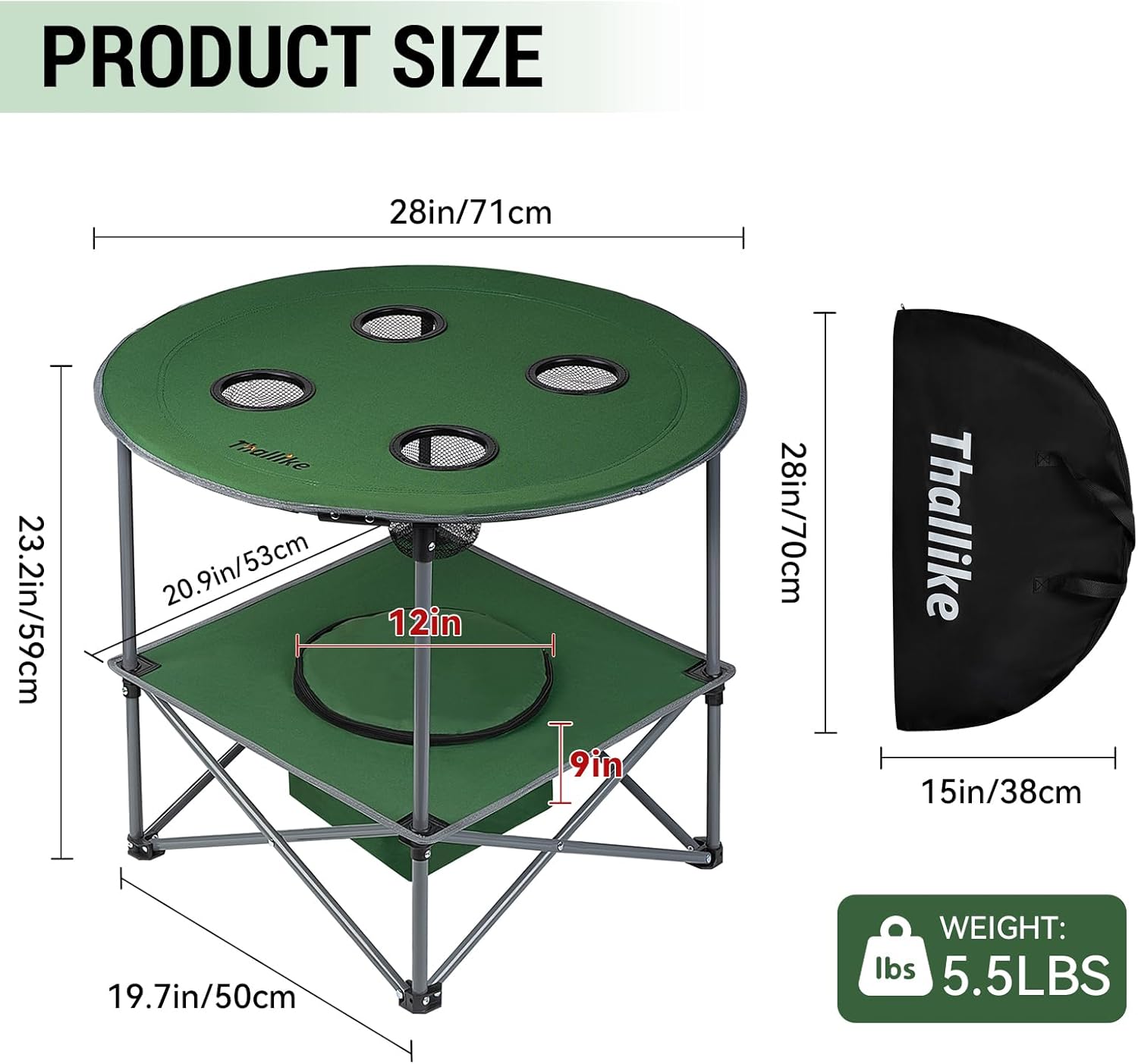 Lightweight & Foldable with Carry Bag: Weighing just 5.5 lbs, this foldable camping table is easy to transport and store. It folds down compactly into the included carrying bag and sets up in seconds with no tools required. Ideal for camping, RV travel, hiking, fishing, and more