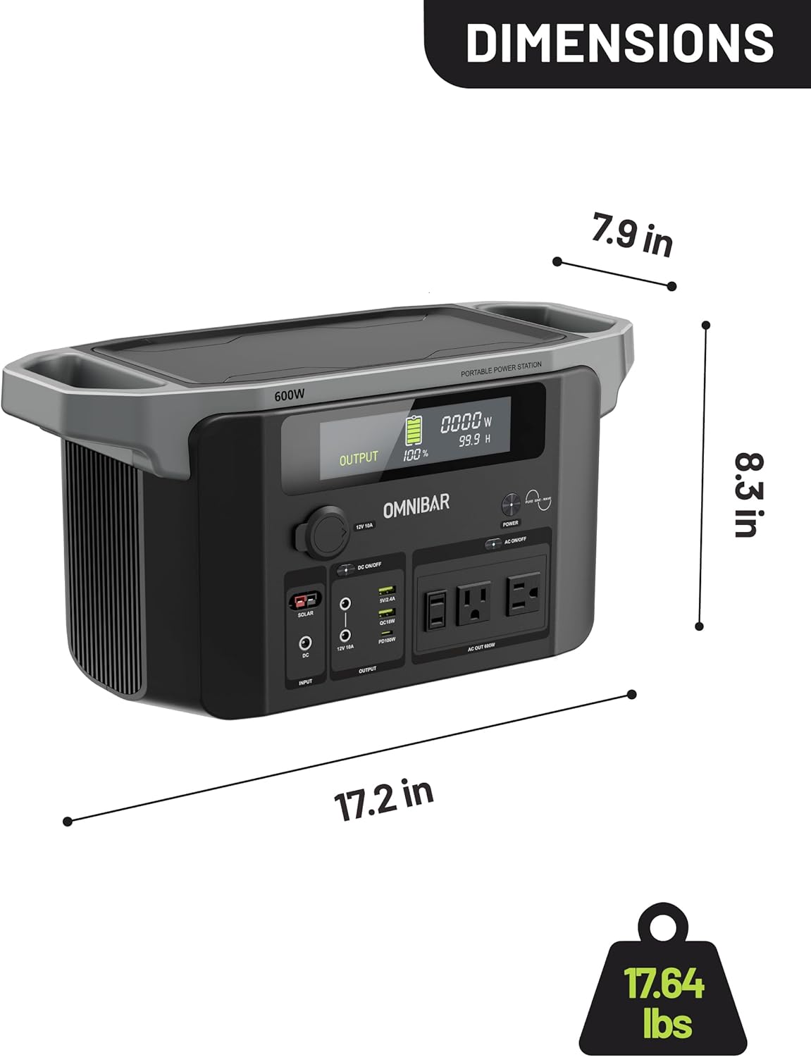 Portable Power Station 600W, 655Wh/182,000mAh Solar Generator with 100W USB-C Output & 120V Pure Sine Wave AC Outlets, Backup Lithium Battery for Outdoors Camping RV (600W)