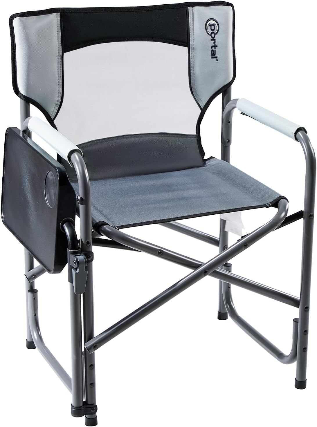 Portal Tablet Table Camping Directors Chair, Foldable Camp Chair with 2-Way Rotatable Side Table, Outdoor Folding Chairs for Adults, Heavy Duty Supports 300LBS for Lawn Patio Beach, Grey