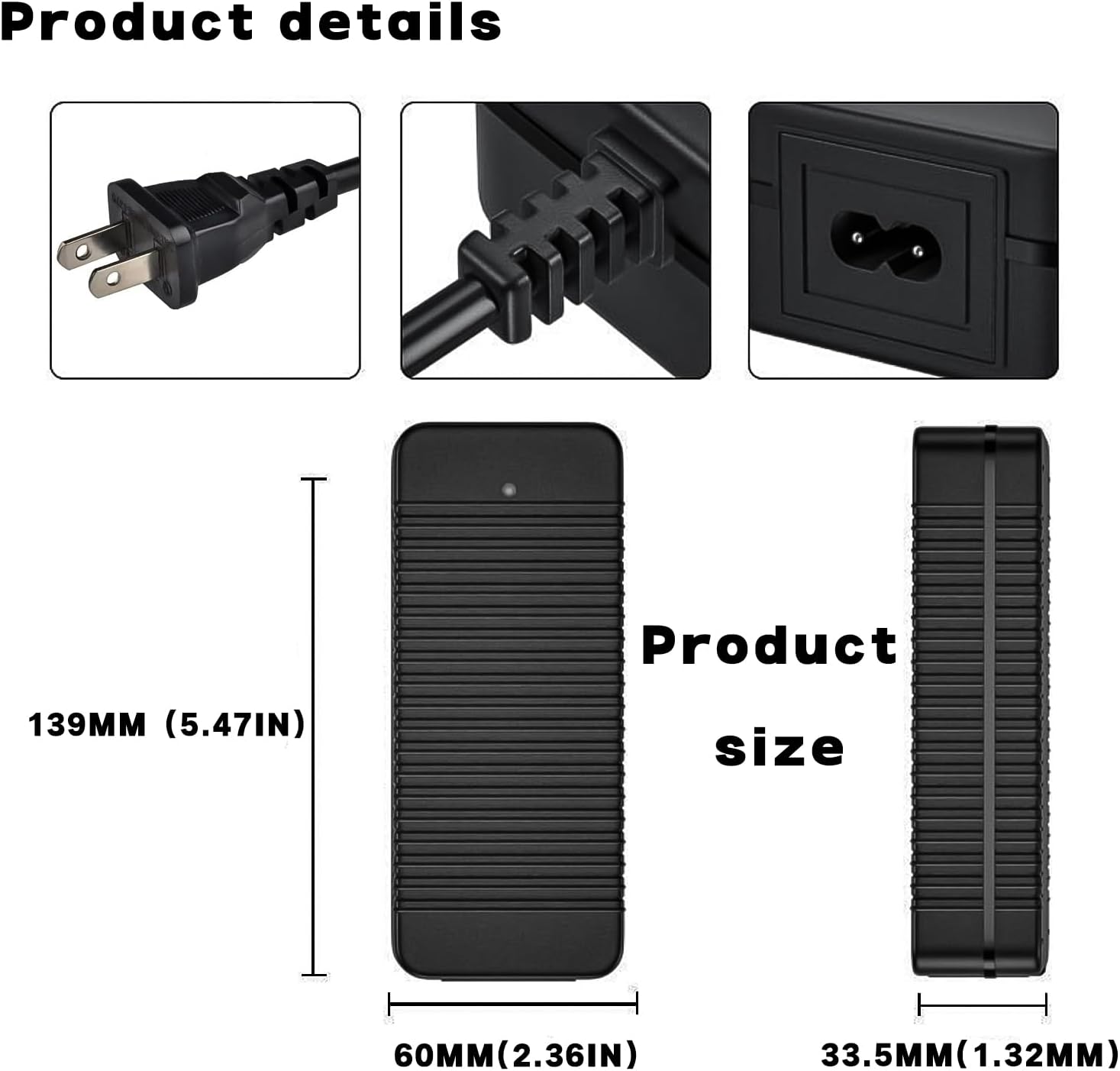 – Self-contained connector: DC 5.5*2.1MM.