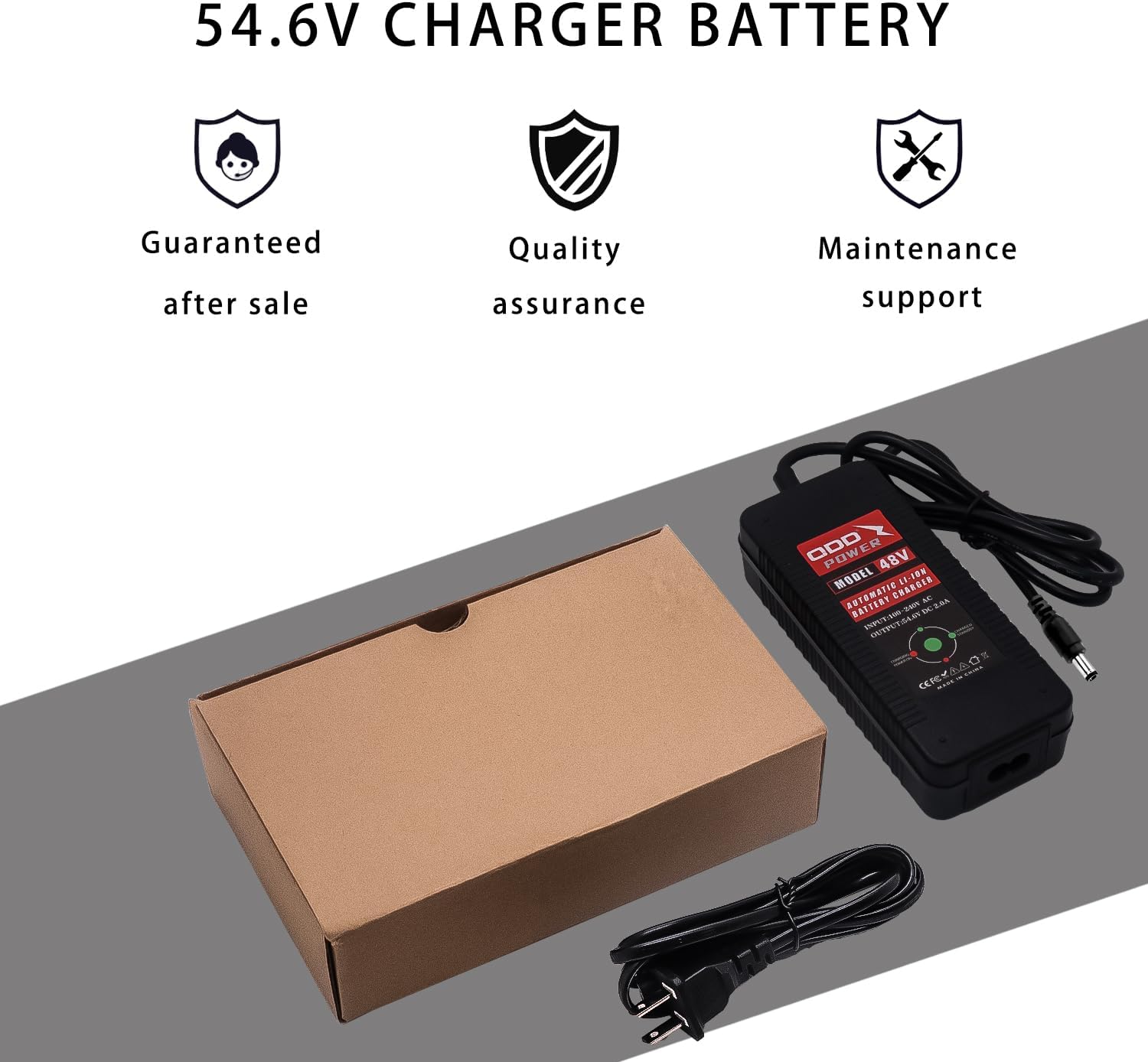 【 Power Protection and Applicability 】QDD 54.6V2A Li-ion charger voltage range is 100V ~ 240V, small size, light weight, strong portability. Suitable for carrying when traveling or camping