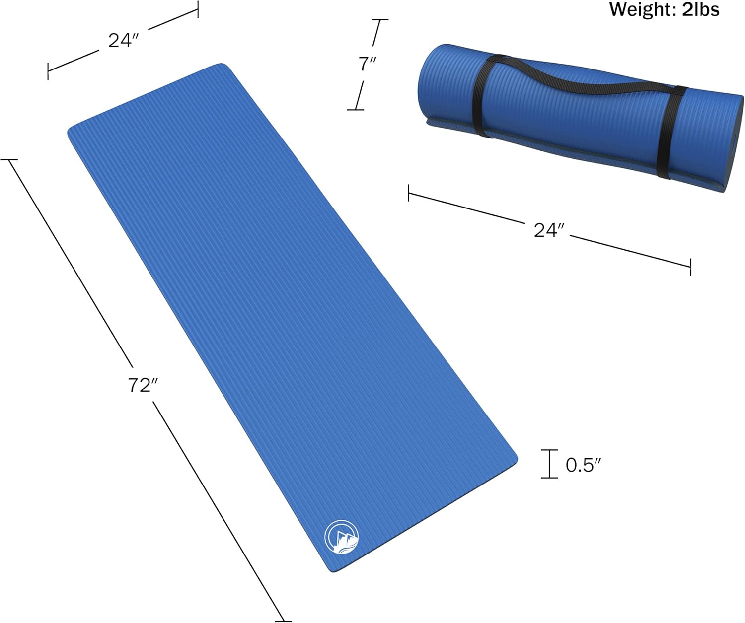 PRODUCT DETAILS – Material: NBR Foam. Dimensions: (L) 72” x (W) 24” x (H) 0.50”. Rolled Dimensions: (L) 24” x (W) 7” x (H) 7”. Weight: 2lbs. Includes Carrying Straps. Set of 2. May Ship Separately. Color: Dark Blue.
