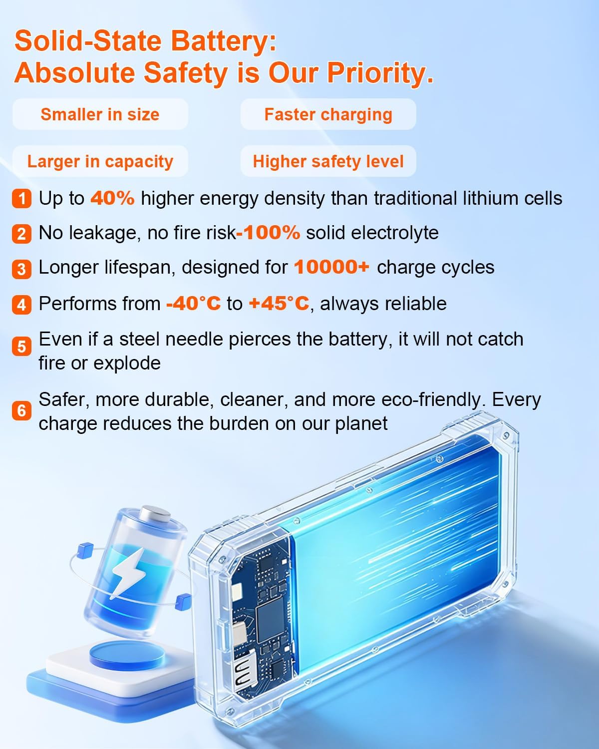 1 Built-in 4 cables 2 High-quality battery 3 Durable cables 4 AI Smart Protection