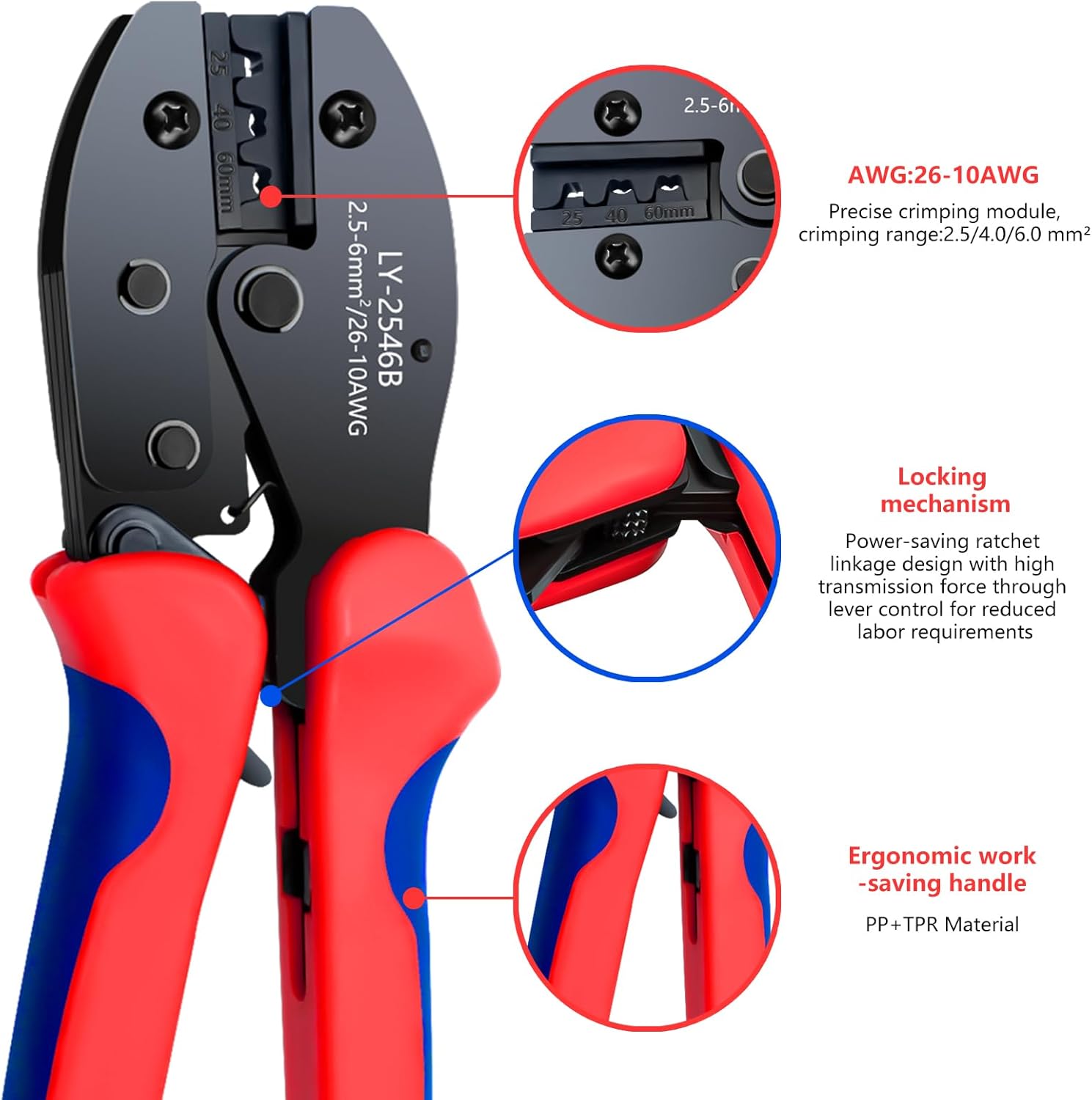 Compatible Cable: Solar connectors compatible with PV cables with different insulation diameters. Solar crimping tool kit for 2.5/4/6 mm² solar PV wire.
