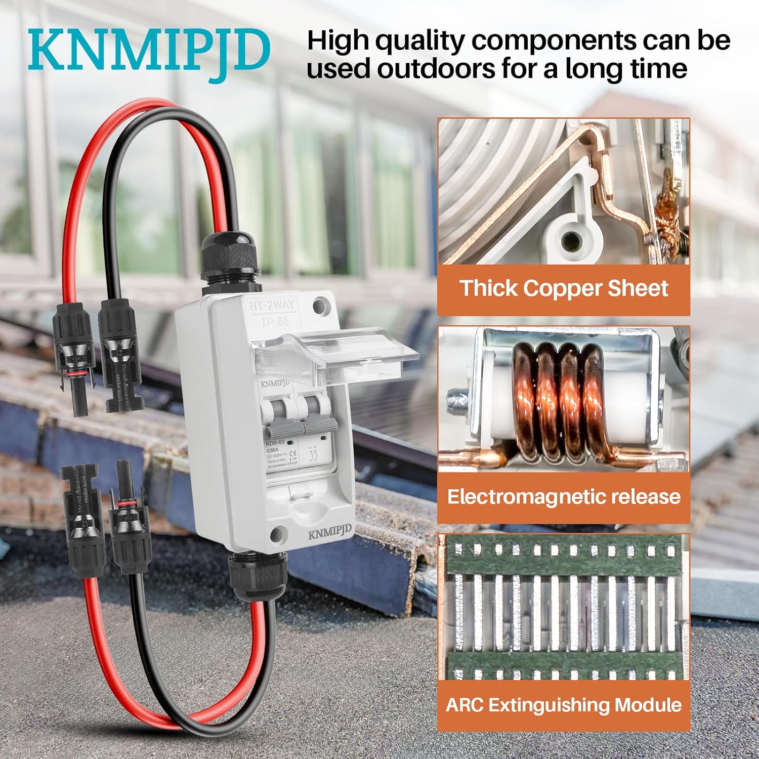 Premium Durability & Visibility:Solar disconnect switch Constructed with thickened purple copper coils, a flame-retardant PC shell, and an ergonomic wide handle. Features a transparent cover for real-time status monitoring and IP65 waterproof/dustproof rating, ensuring reliability in harsh outdoor environments
