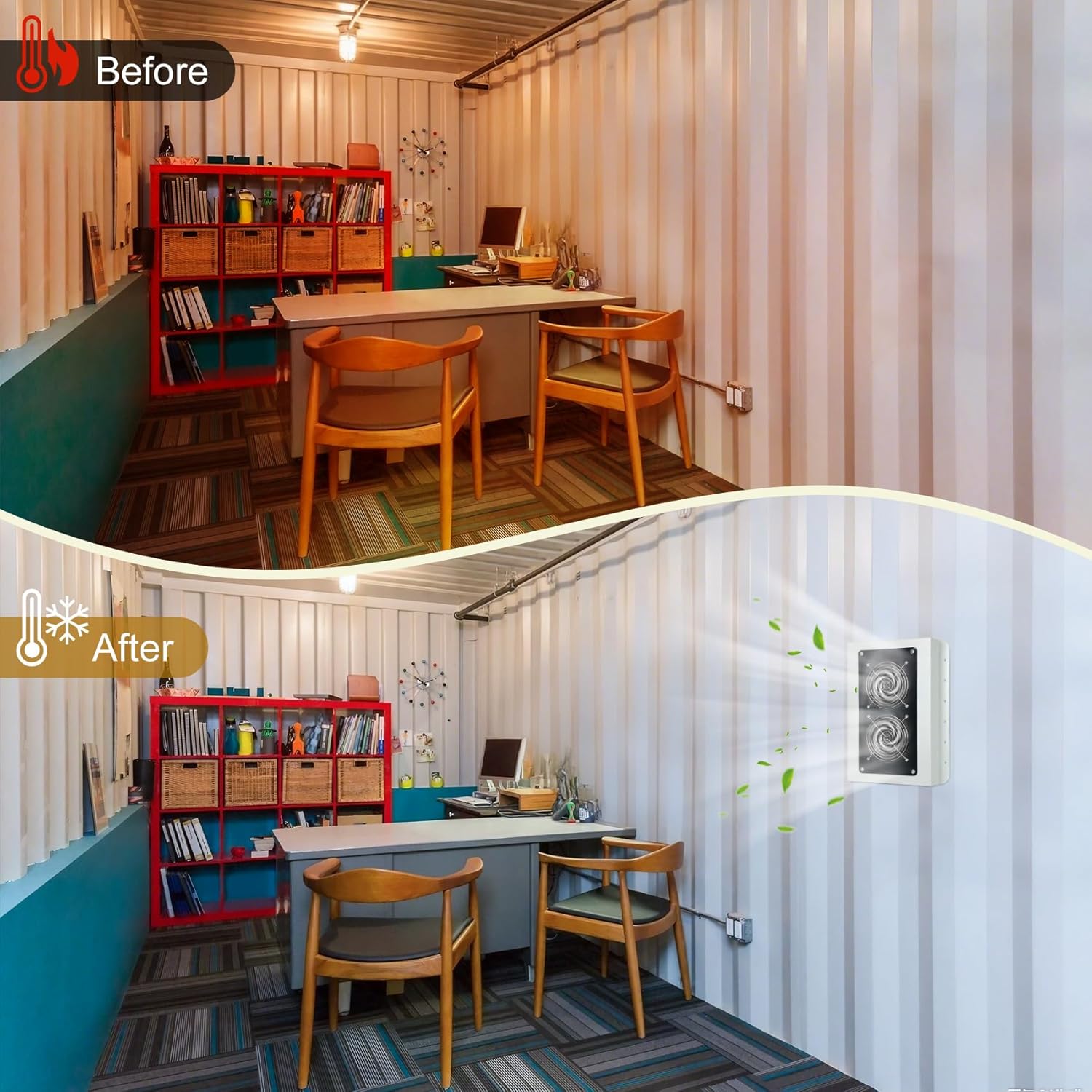 【Adjustable Solar Panel & Dual Fans】Equipped with two built-in exhaust fans and a tilt-adjustable solar panel, this solar shipping container vent kit tracks the sun for maximum energy conversion. Ideal for containers, sheds, and cabins, it ensures stable charging and consistent airflow all day long.