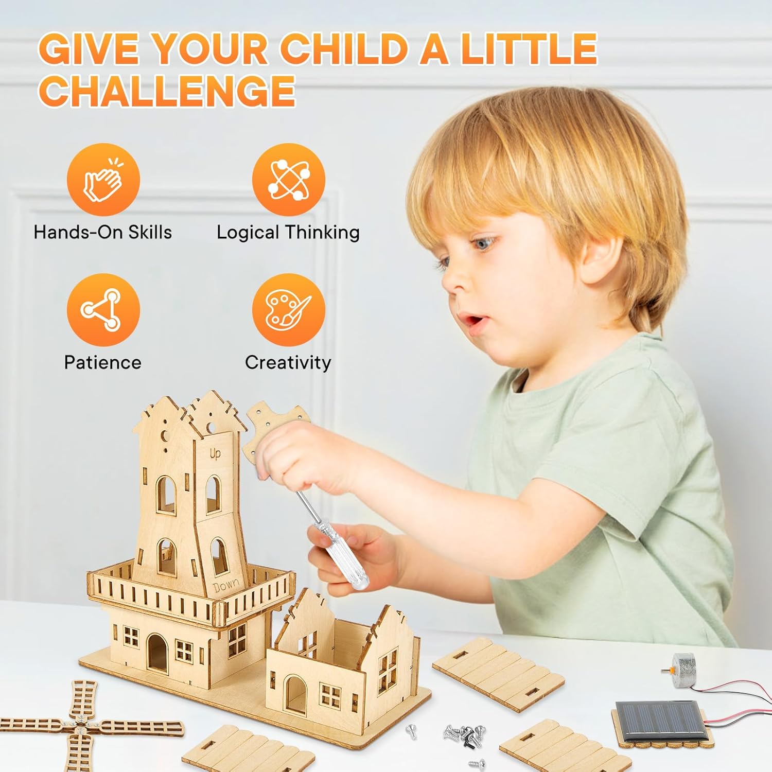 🎨【Dynamic Solar Puzzle】- A Unique STEM Toy That Comes to Life! Unlike traditional puzzles,This Windmill House isn’t just a static model—it’s funny to watch the windmill spin under sunlight! A perfect STEM kit blending science learning with hands-on fun,teaching kids about solar energy in an engaging way.