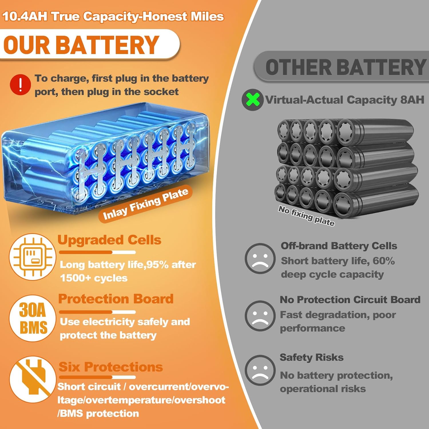 EXTENDED RANGE & DURABILITY: Engineered for long-term use, this power unit withstands 1,500+ charge cycles while delivering approximately 20- 35 miles per charge in moderate temperatures. The cells maintain stable performance across varying seasonal temperatures.