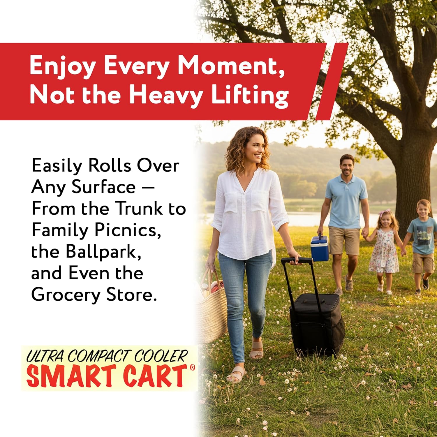 Ultra Compact Cooler Smart Cart with Wheels – Collapsible Insulated Cooler Bag – Foldable Travel Cooler 36 Cans – Leak Proof Trolley – Black