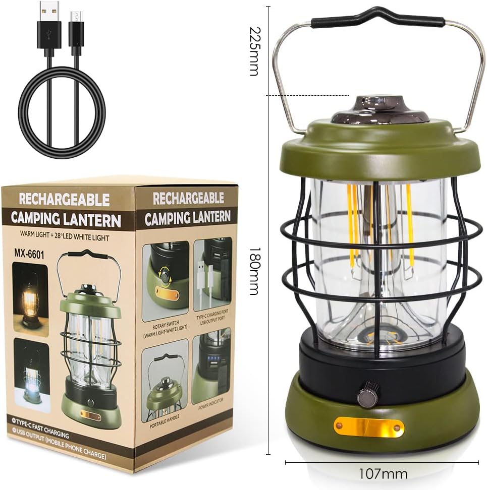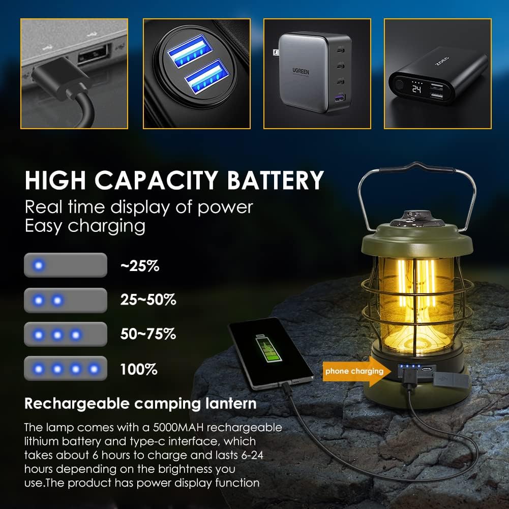 💡【Rechargeable Battery Lantern】Rechargeable battery lantern Built-in Large capacity rechargeable battery provides long runtime, you could plug provided Type-C charger into your car’s USB port or laptop for recharging and no need to replace battery. Even better, this led lantern has a USB port out for charging your mobile or other devices, making it great as an emergency battery lantern during power outages, earthquakes, indoor and outdoor usage in emergency.